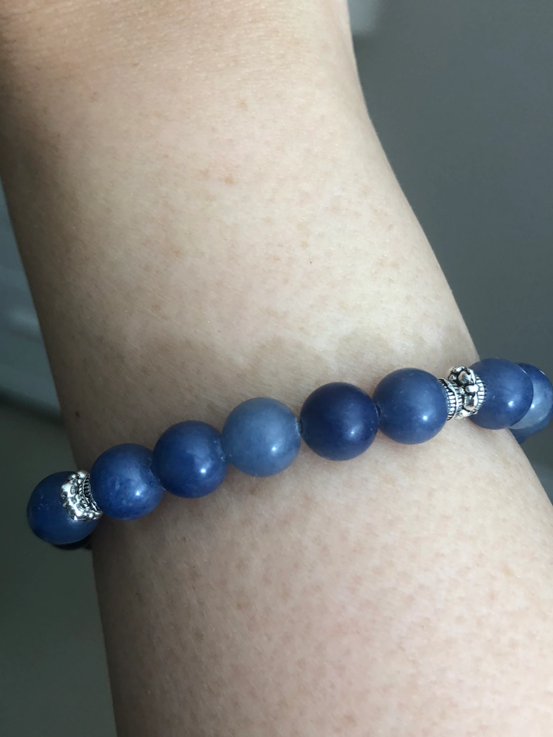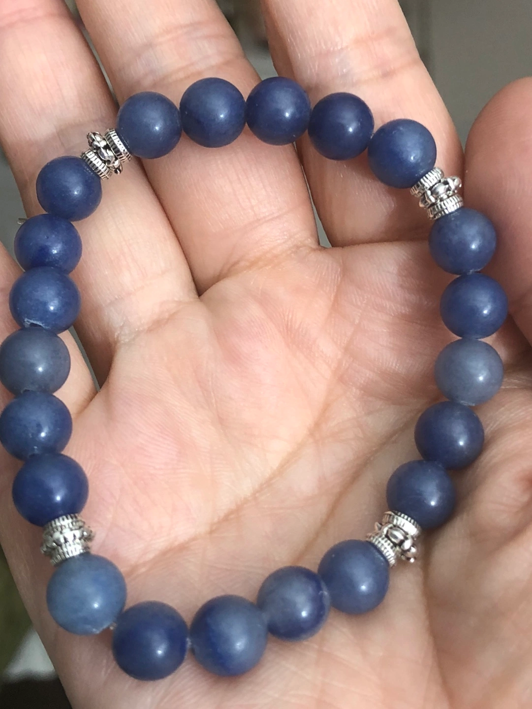 8mm blue aquamarine stone - bracelet. Handmade design with vintage silver ally bead. 21 beads stands for luck. Very Royal , elegant look.