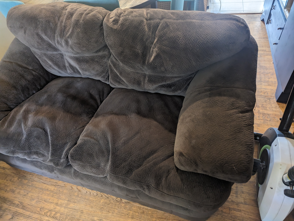 If you have a butt and are looking for a comfortable place to put it, look no further! This loveseat is amazing comfortable, perfect for kids to sit and play video games or for a long movie night. It's still solid. Feet are included but not attached, they are stored within the bottom of the couch.