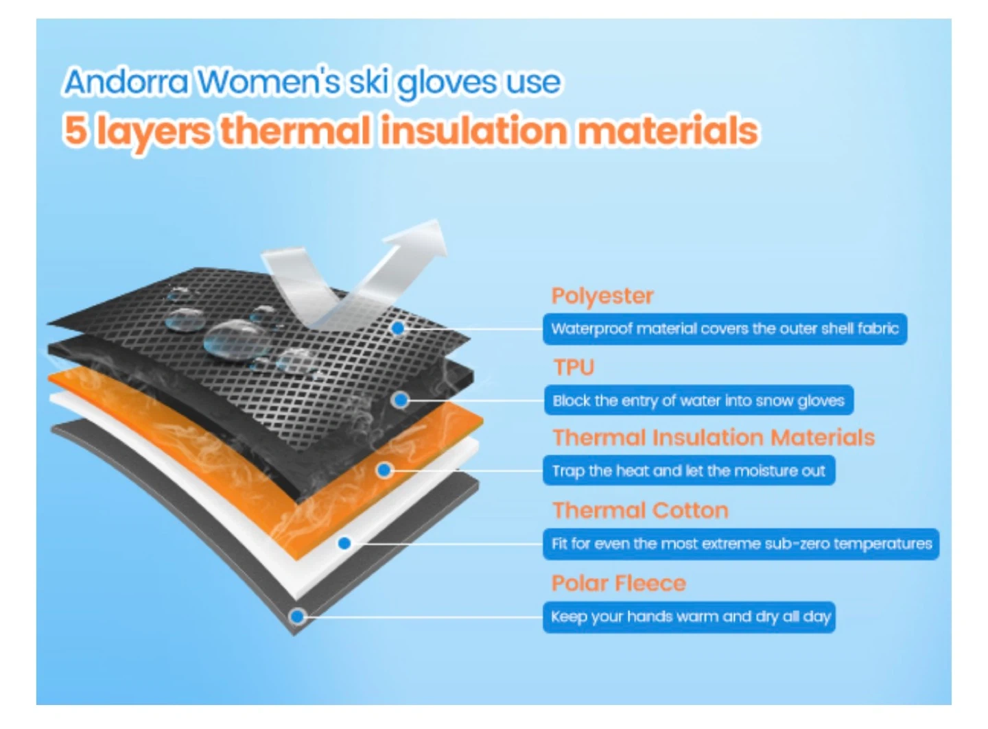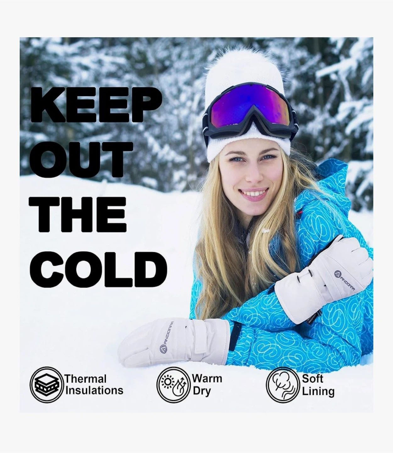 5.【Andorra Ski Gloves】Ideal for outdoor sports activities. The women's winter gloves are perfect for bike riding, ice climbing, skiing, hiking, riding, shoveling, camping, hiking, and much more