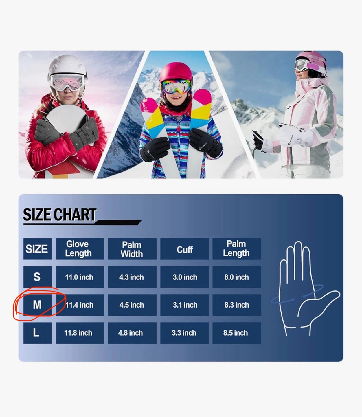 2.【Touchscreen】This 3 Finger touchscreen compatible ski glove lets you hand-hold a phone, pick up a call, and operate multi-touch functions without removing the ski gloves