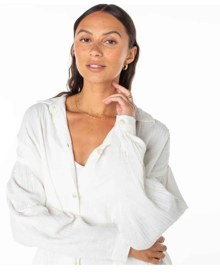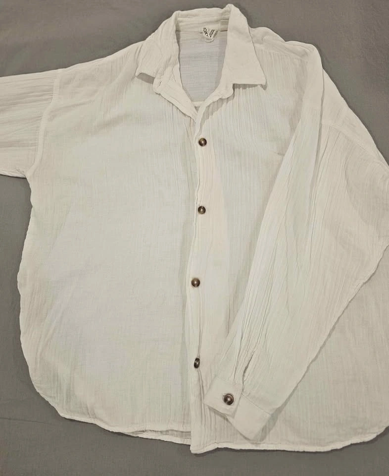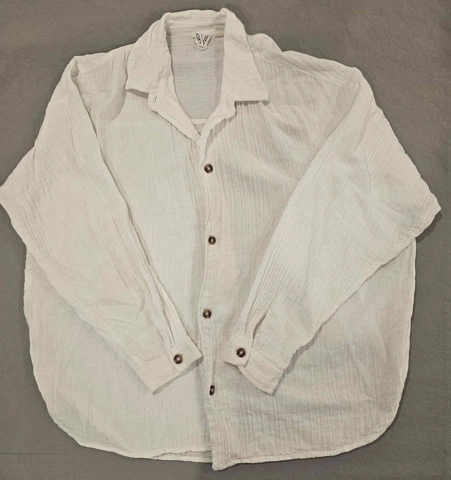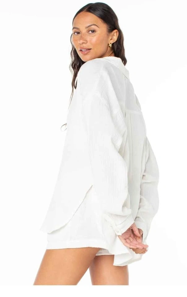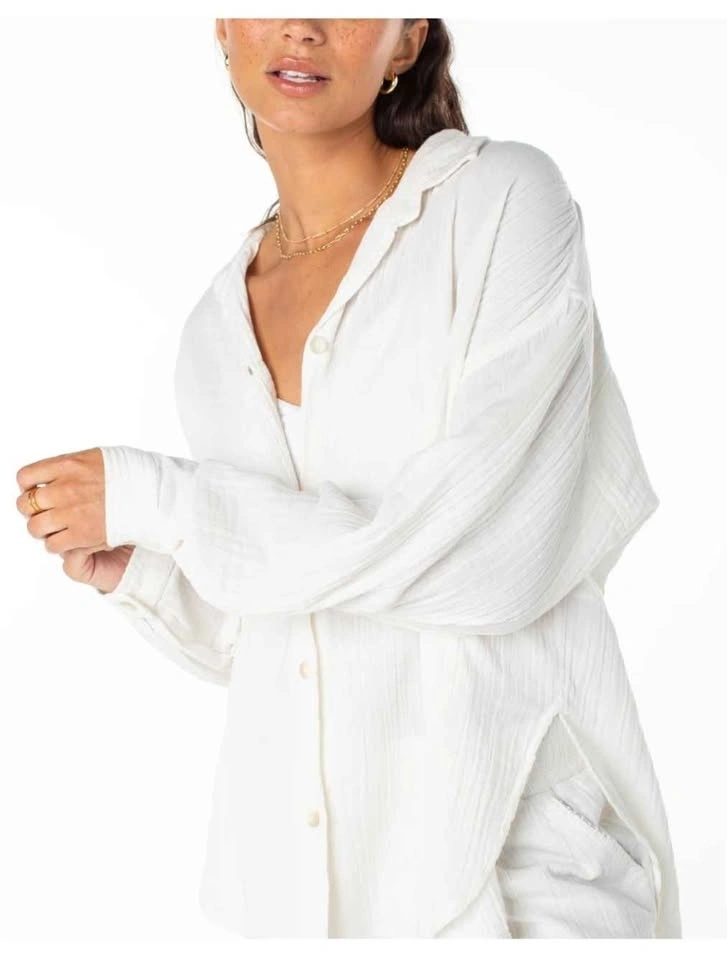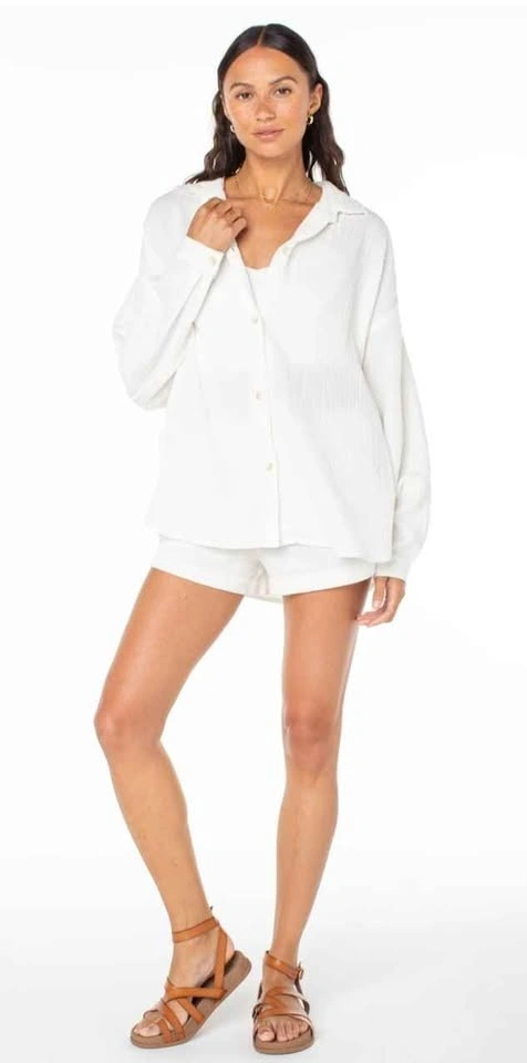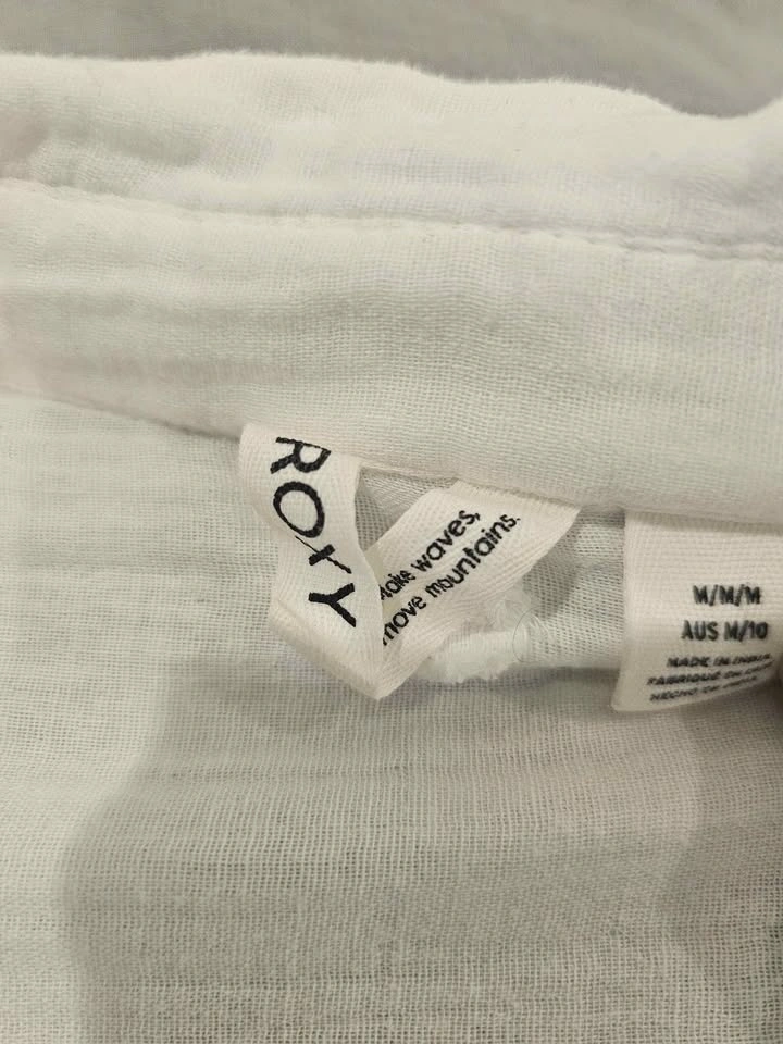 Lightweight Roxy button up shirt. White crinkly gauze fabric. Long sleeve. Size M (AUS 10). Super comfy for beach or just chilling. List Price $20 (retails for $60).