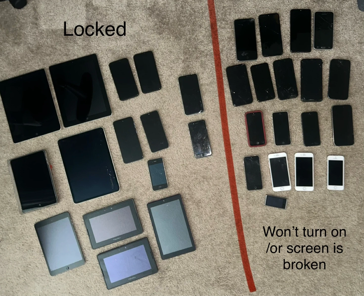 Large collection of electronics includes several Apple iPads, various iPhone models, Samsung Galaxy smartphones, and Motorola devices. Lot has mix of tablets and cell phones and a iPod. Some have cracked screens and locked/ `unavailable’ screen/ or just a apple logo. Also as shown in last two photos some have been disassembled for parts. Great for tech hobbyists or repair shops looking for components!