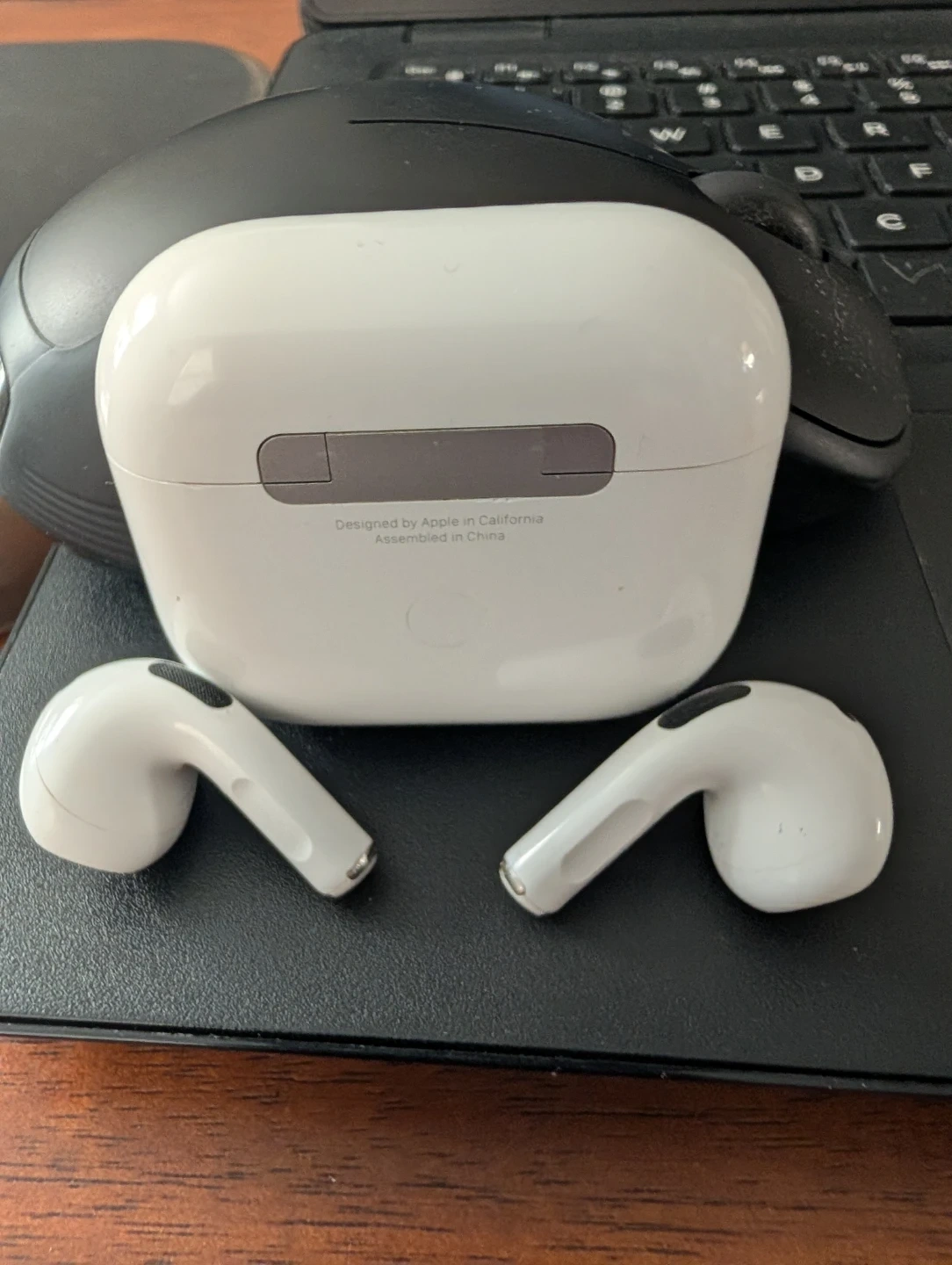 This is a pair of Apple AirPods Pro (2nd Generation). It comes with the charging case. Designed by Apple in California, assembled in China. Charging cable included