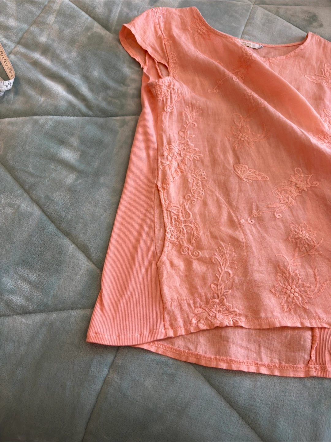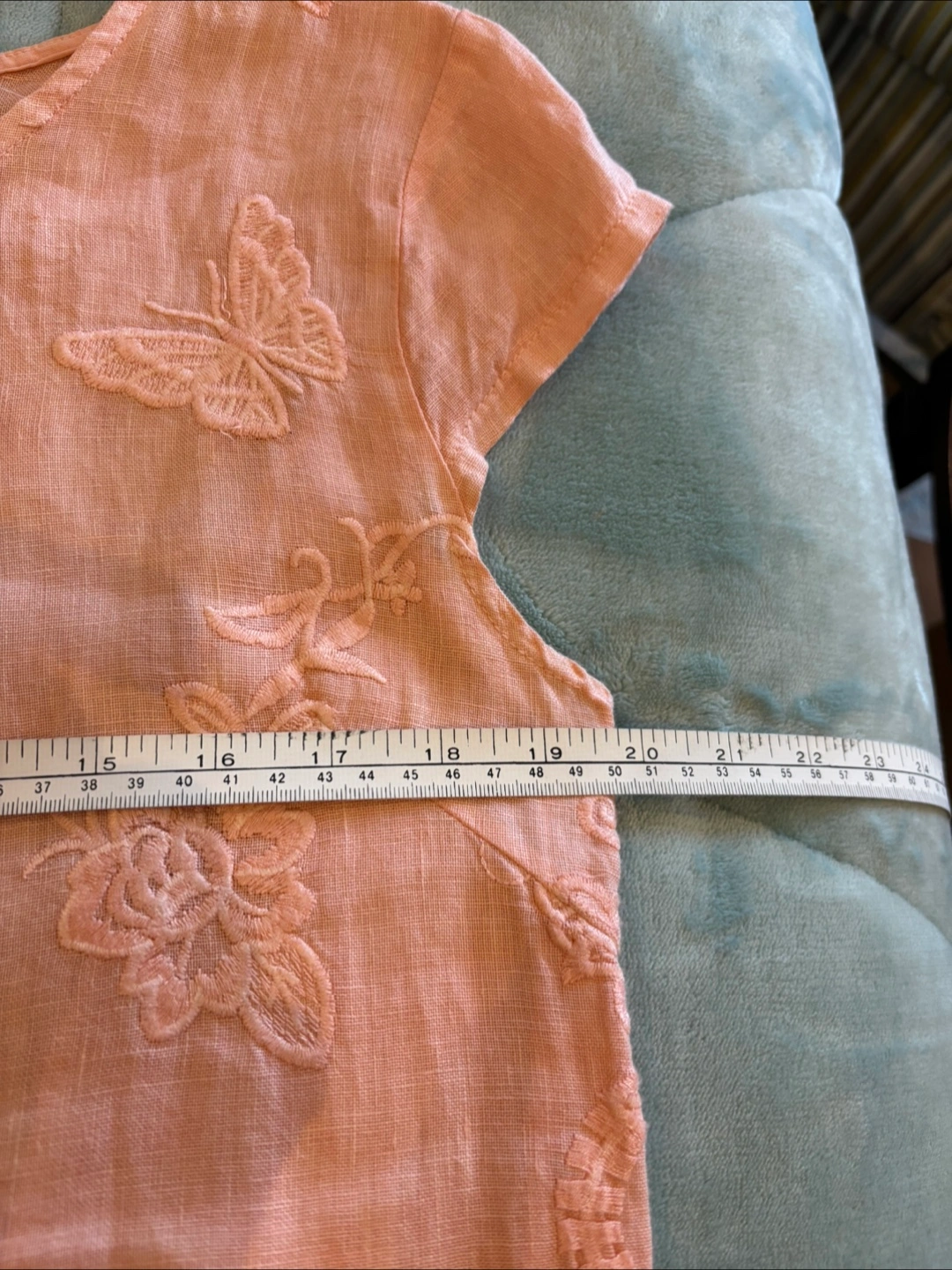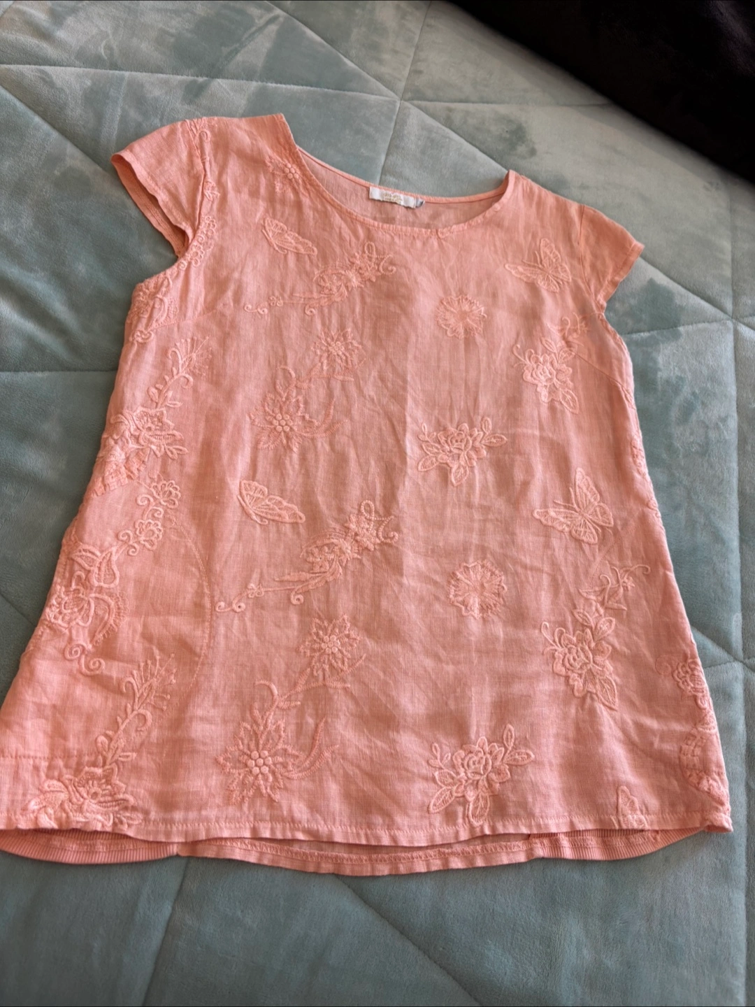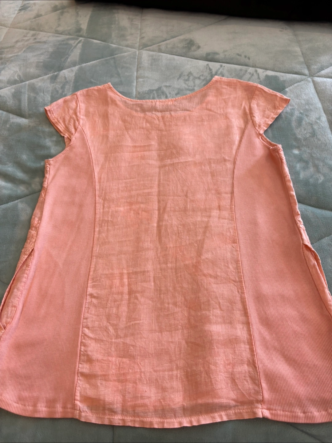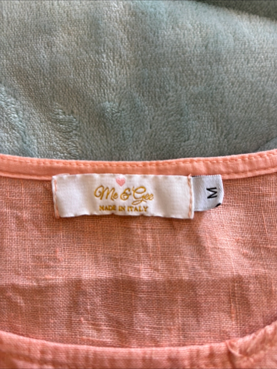 Really pretty light orange/coral top; 100% linen with some stretchy material on the sides which makes it very comfy. It even has pockets! Made in Italy in excellent condition. Size medium