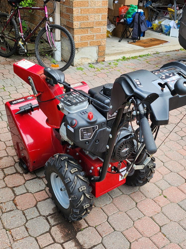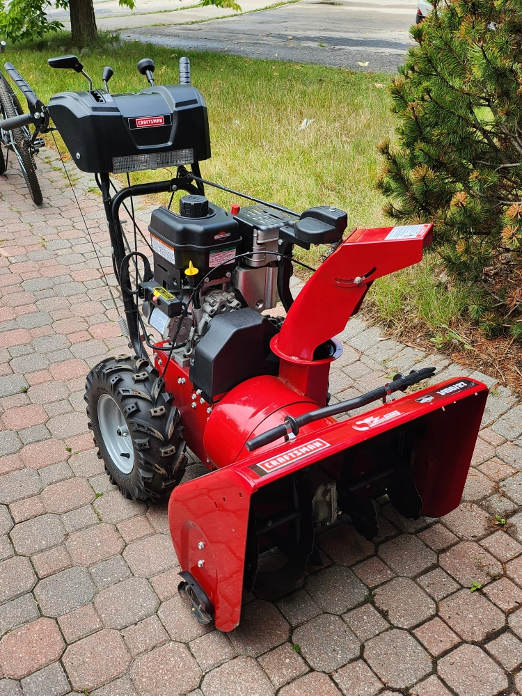 Craftsman 1450/27 red snowblower for winter times on grass or driveway. The blower was only used a few times during the winter and is in good condition.