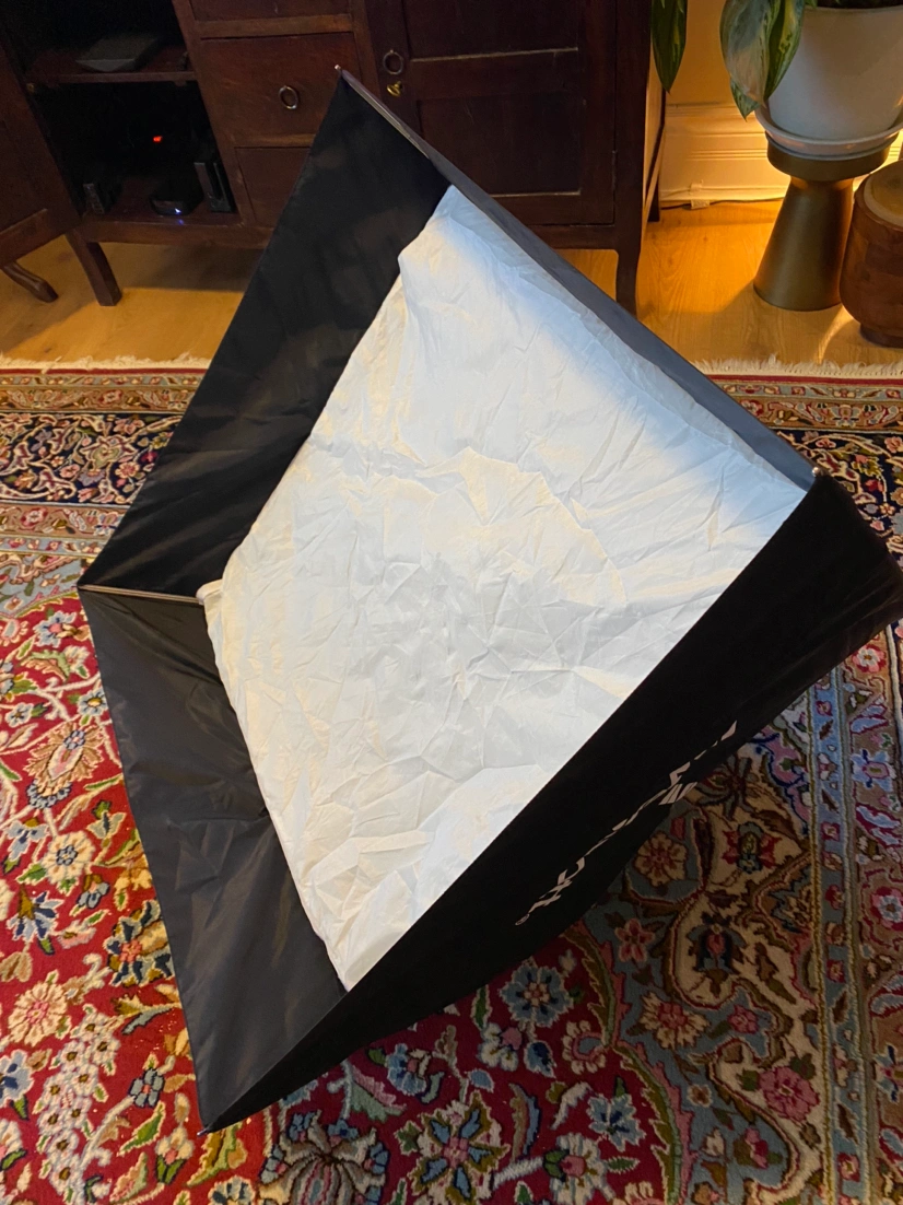 Selling Westcott Medium Apollo Speedlite Softbox (28" x 28"). Great condition. Used only on two photoshoots. Local pickup only.
