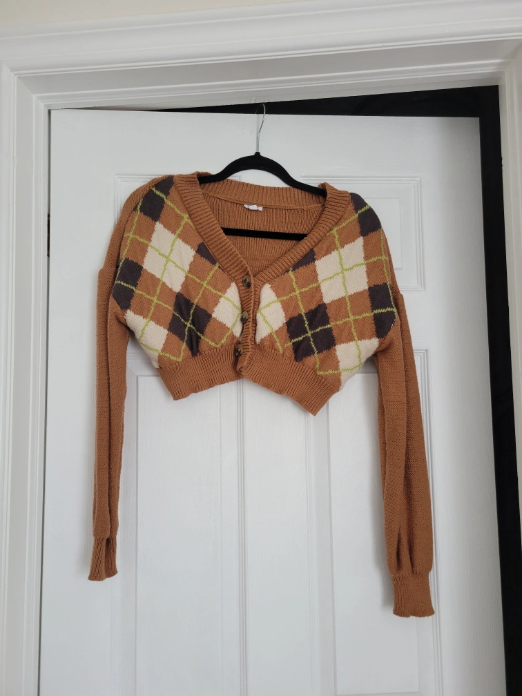 GARAGE Brown Plaid Cropped Knit Sweater / Cardigan