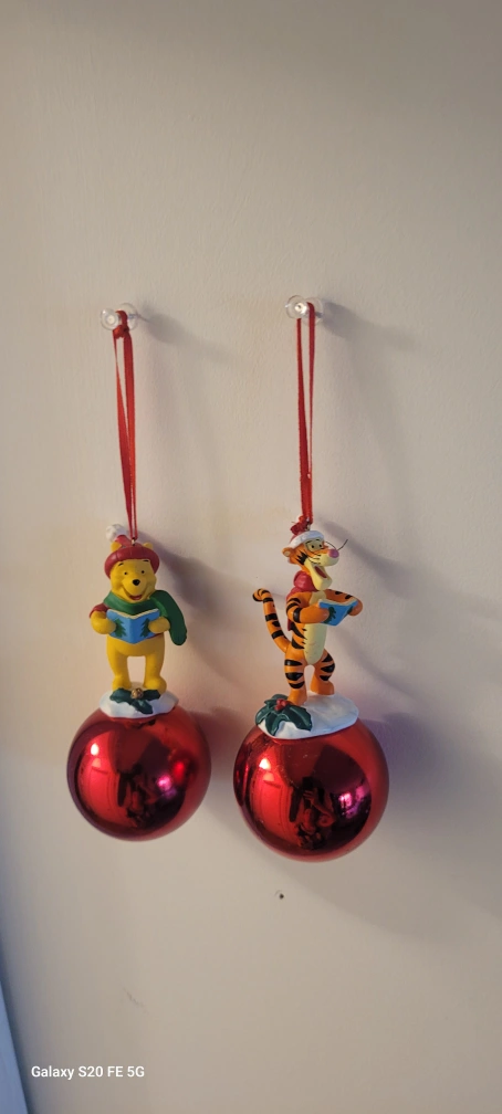 Christmas hanging ornaments of Winnie the Pooh and Tigger.