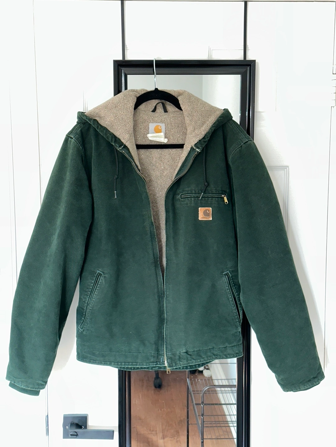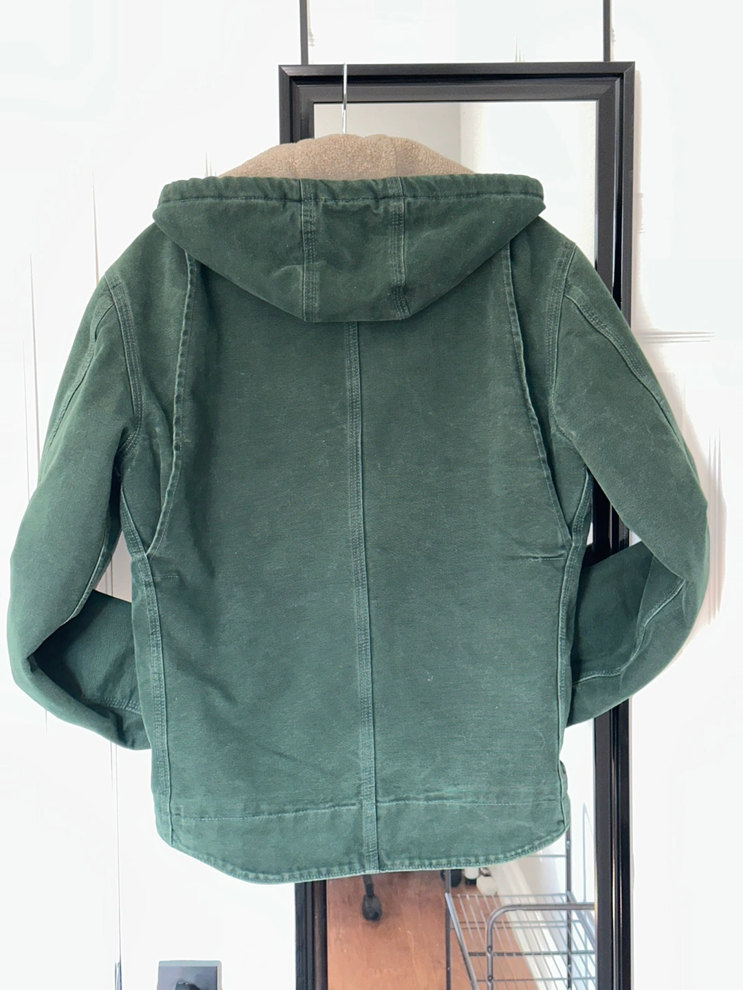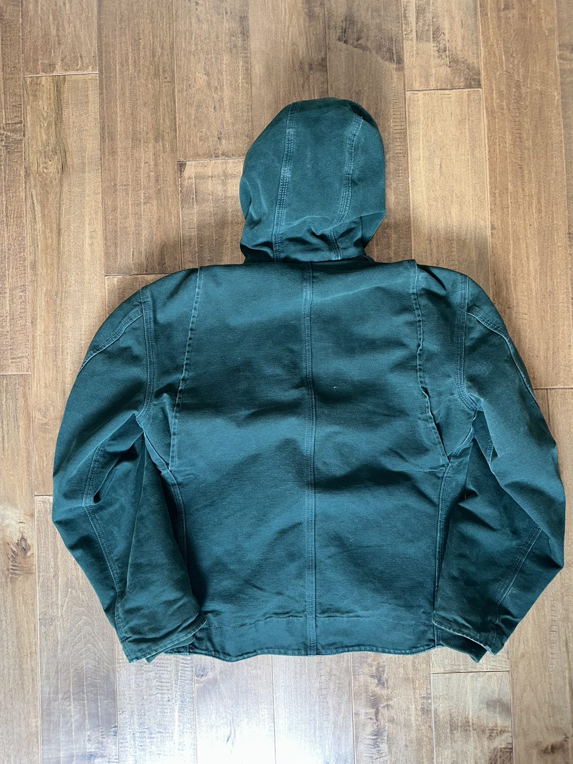 68Condition: Gently used condition, beautiful fade started to show. No rip, no tearing, jacket is clean and washed. Pls refer to pics. Last picture show’s measurements. Jacket is lined, very warm. Good for colder seasons. Accepts cash payment, local pick up only. Offers are welcome.