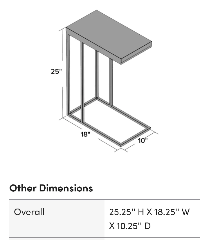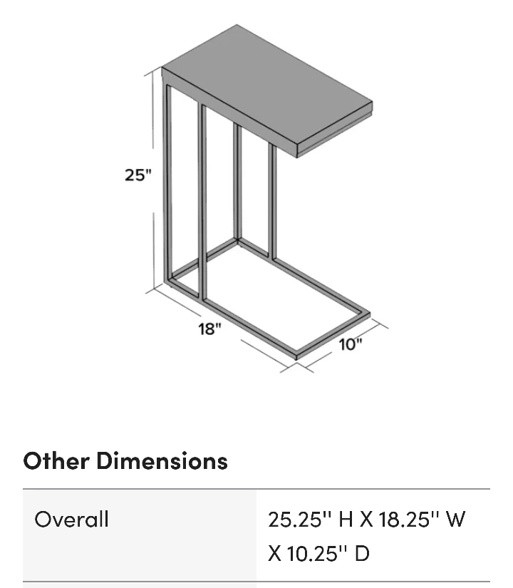 - C-shaped accent side table