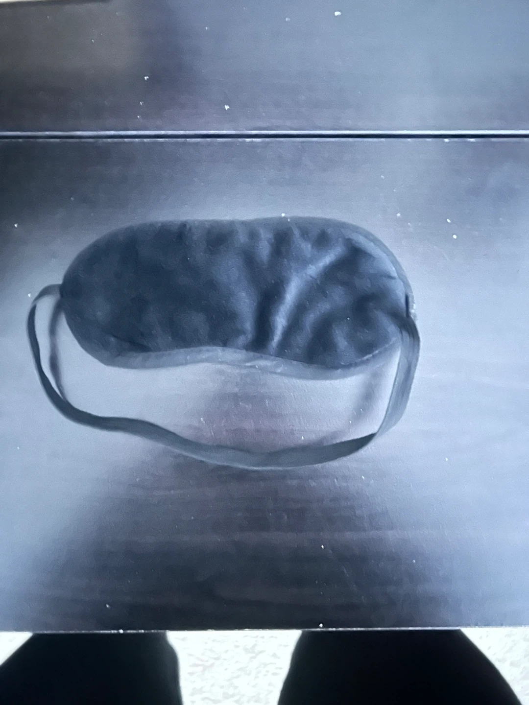 A soft black sleep mask with a vibrant blue interior featuring a textured pattern. It has an adjustable elastic strap for a comfortable fit. Great for blocking out light during travel or at home!