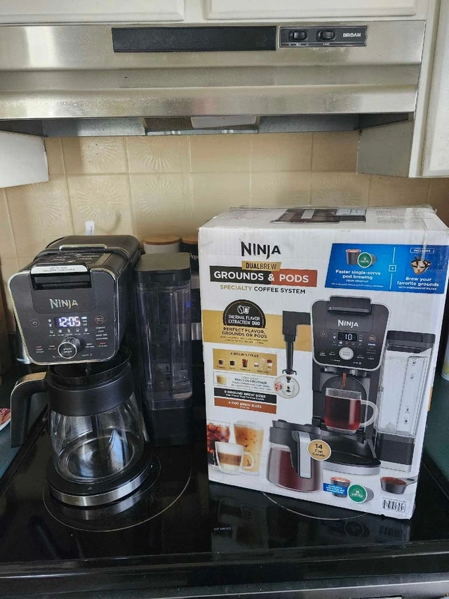 1 / 71 / 7Buy & SellNinja Dual Brew Coffee MakerNinja Dual Brew Coffee Maker$80Brew k cups or pot of coffee. Has frother on side. Like new condition. Brews well, brews hot, good flavour. Includes box.WHERE TO MEETCheck LocationView MapSELLERRyan FBrier Park100 reviews0 chats·0 favorites·8 viewsSEND CHAT TO SELLERHi Ryan F! I’m interested in your listing.Hi Ryan F! I’m interested in your listing.Get the Karrot app to chatSign In to chat