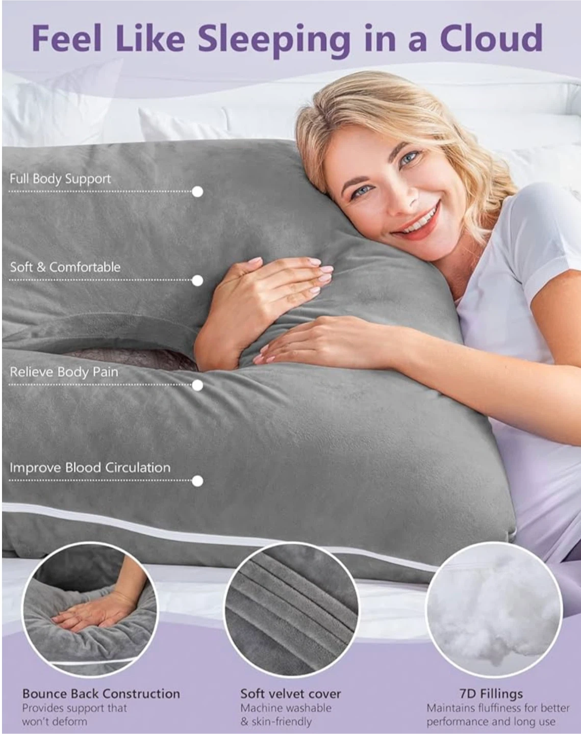 This Meiz full body pillow offers excellent support and comfort. It features a soft velvet cover that's machine washable and skin-friendly. The pillow is filled with 7D fillings for sustained fluffiness and long-term use.
