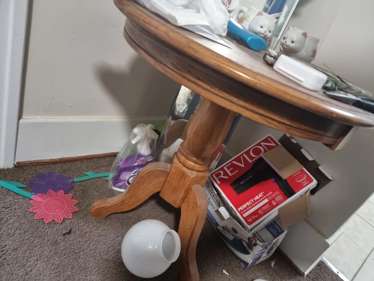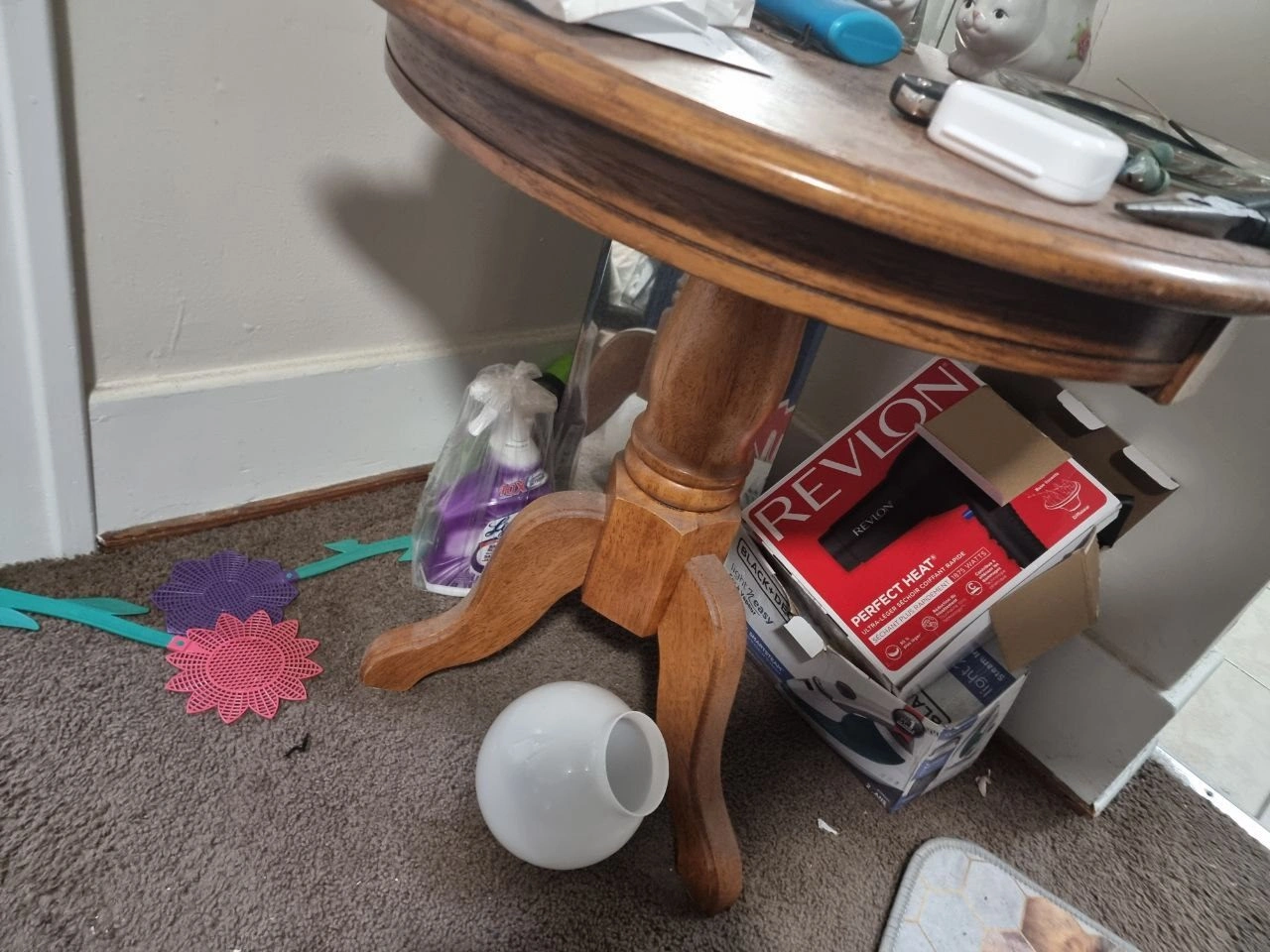 Selling a matching set of 3 living room tables. Includes one large oval coffee table and two round side tables.