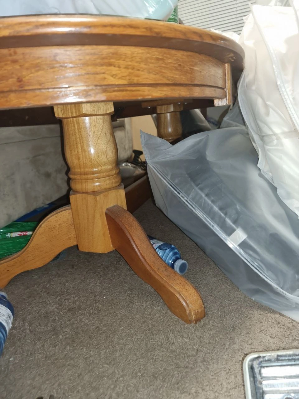 Structurally excellent, but the coffee table top has some cosmetic water marks (see photos). Great for a DIY refinishing project or a student apartment.