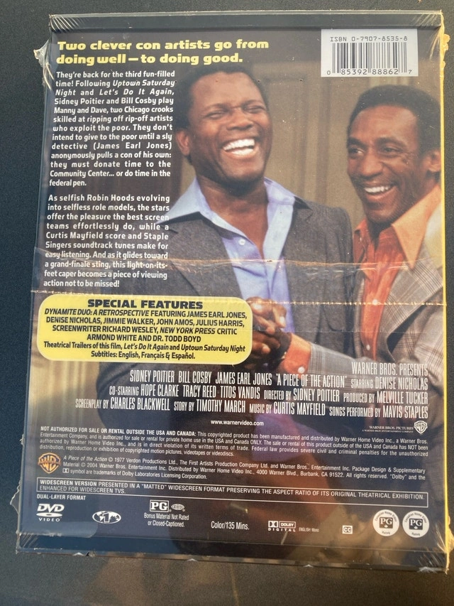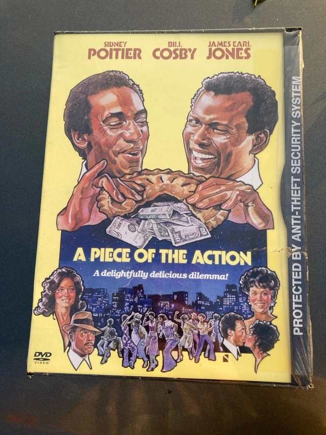 Own a piece of cinematic history with this vintage DVD of 'A Piece of the Action,' starring Sidney Poitier, Bill Cosby, and James Earl Jones. This classic film from 1977 is a delightful addition to any movie collection. The DVD is in good condition and plays perfectly. If you're seeing this ad, the DVD is still available. Cash deal available.