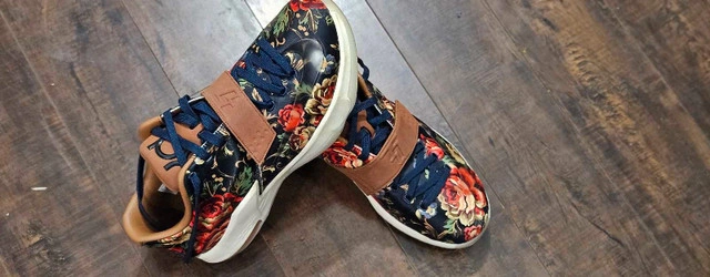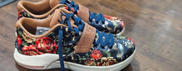 Nike KD 7 EXT QS Floral is a stylish and comfortable sneaker for men. The floral pattern on the upper adds a unique touch to the design, making it stand out from other athletic shoes. The shoe is part of the Nike KD product line, known for its high-quality and performance-focused shoes. This particular model is a size 12, perfect for those who need a larger size. Whether you're hitting the gym or just looking for a casual shoe to wear, the Nike KD 7 EXT QS Floral is a great choice. Its athletic style and comfortable fit make it perfect for any occasion.