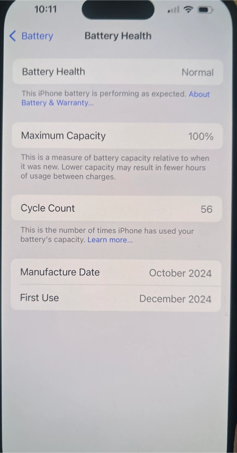 • Battery Cycle Count: 56