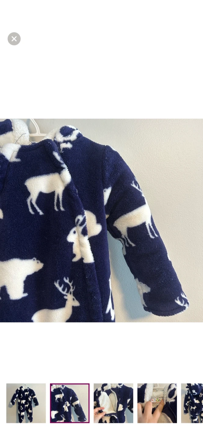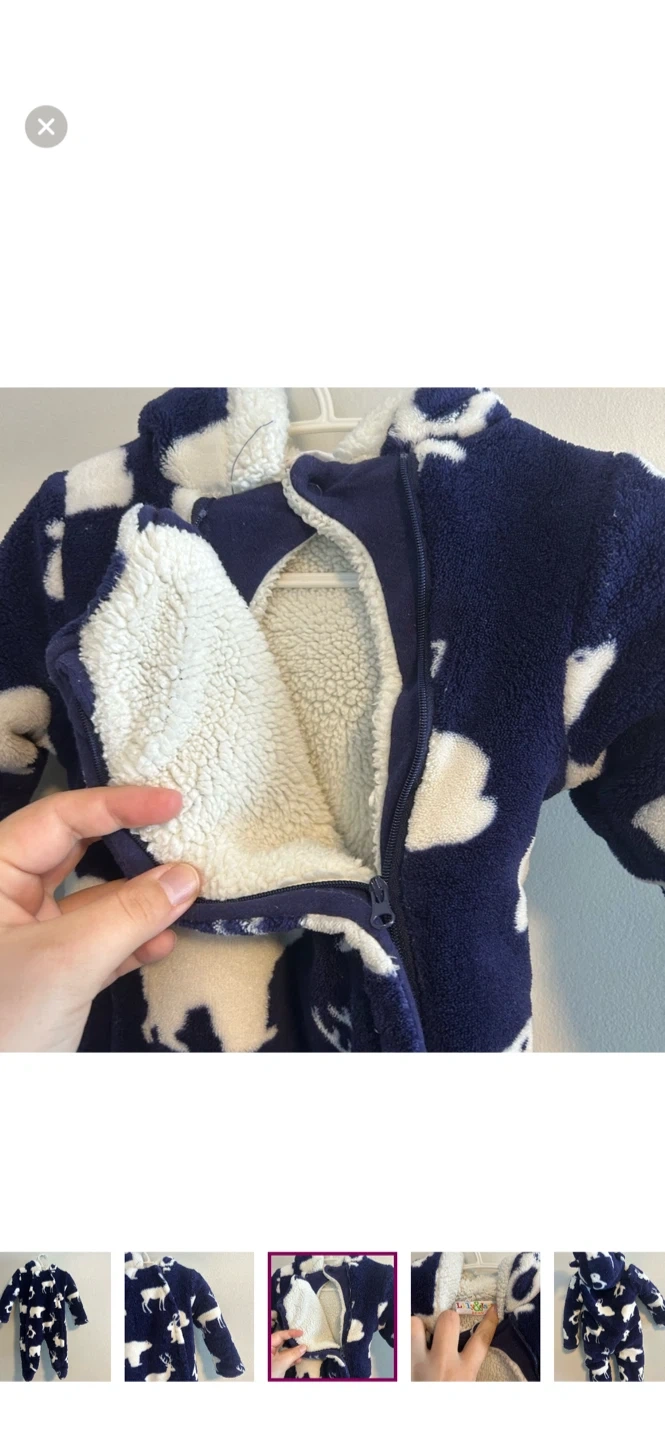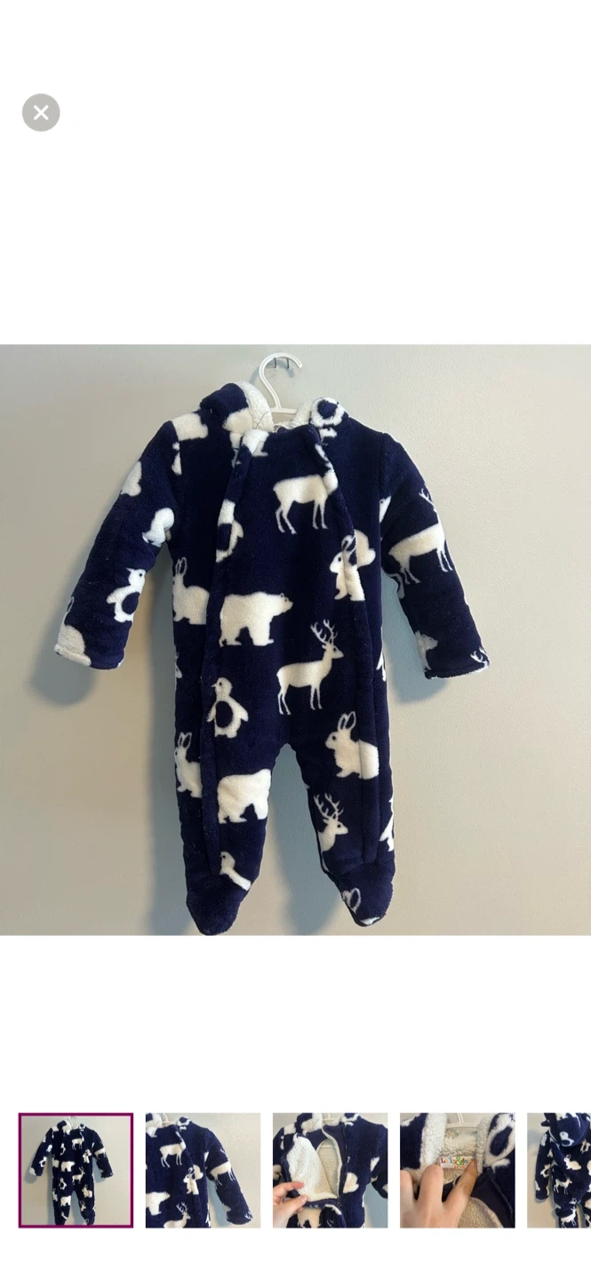 Lily & jack brand. Double zip up thick fleece bunting suit. Navy blue with white animal print. Size 3/6m. Brand new condition
