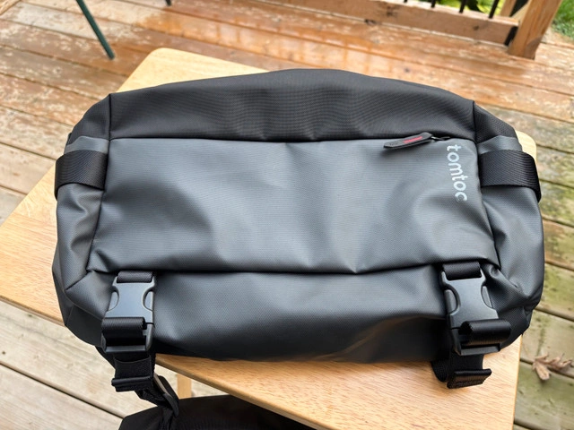 Bag is brand new, wasnt used and has no marks or scratches. It can fit a 14” laptop and other edc items. Material feels very premium and its water resistant. Feel free to message if you have any questions!