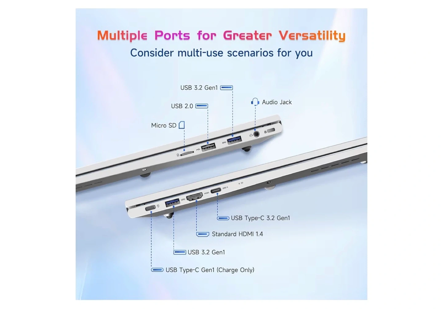 This 17.3-inch laptop features a 12th Gen Intel Core i3-1215U processor with 6 cores. It's equipped with a backlit keyboard, fingerprint reader, and a numeric keypad for enhanced usability. Includes a 65W Type-C PD charger that's compatible with laptops, tablets, and iPhones.