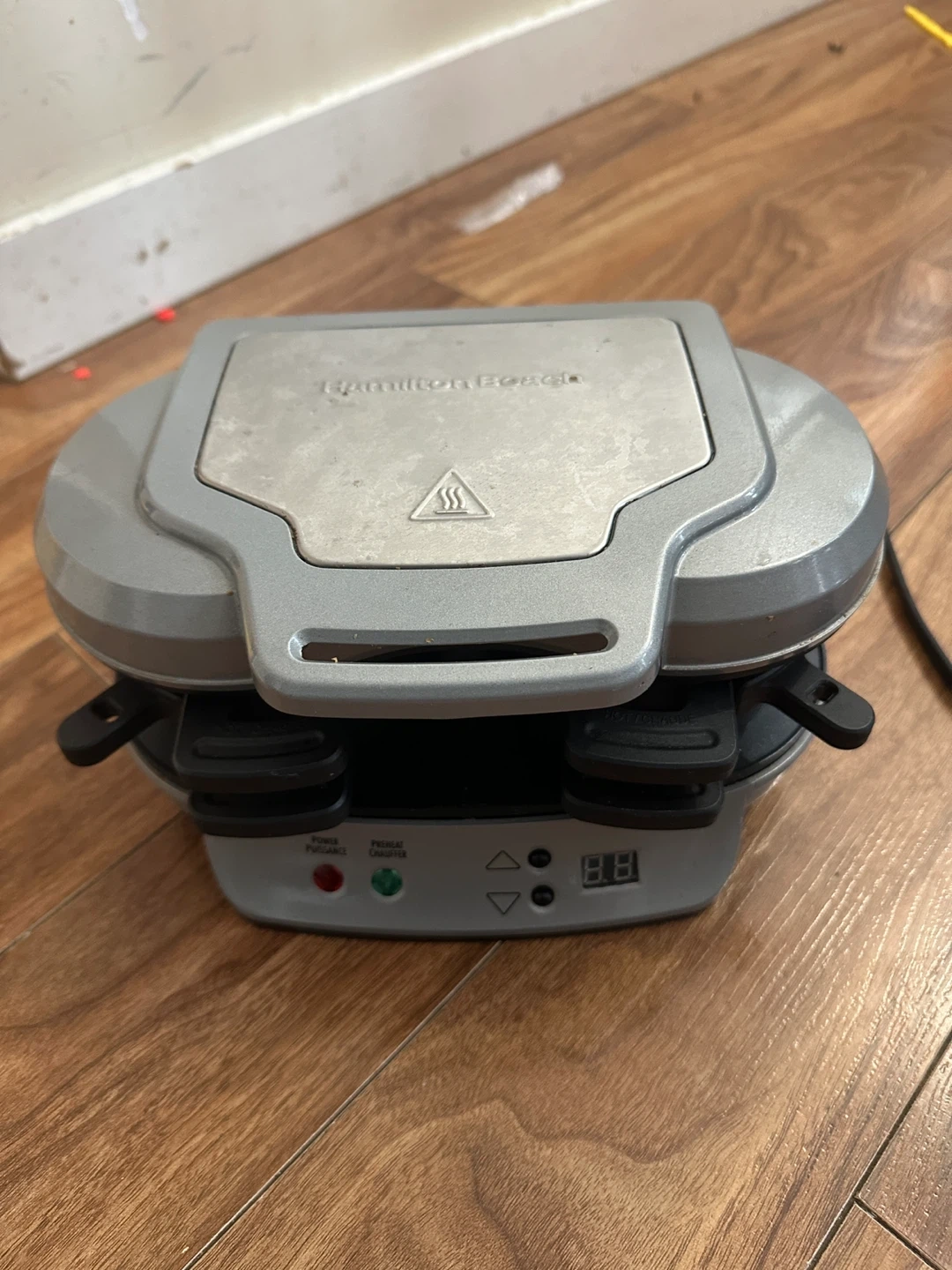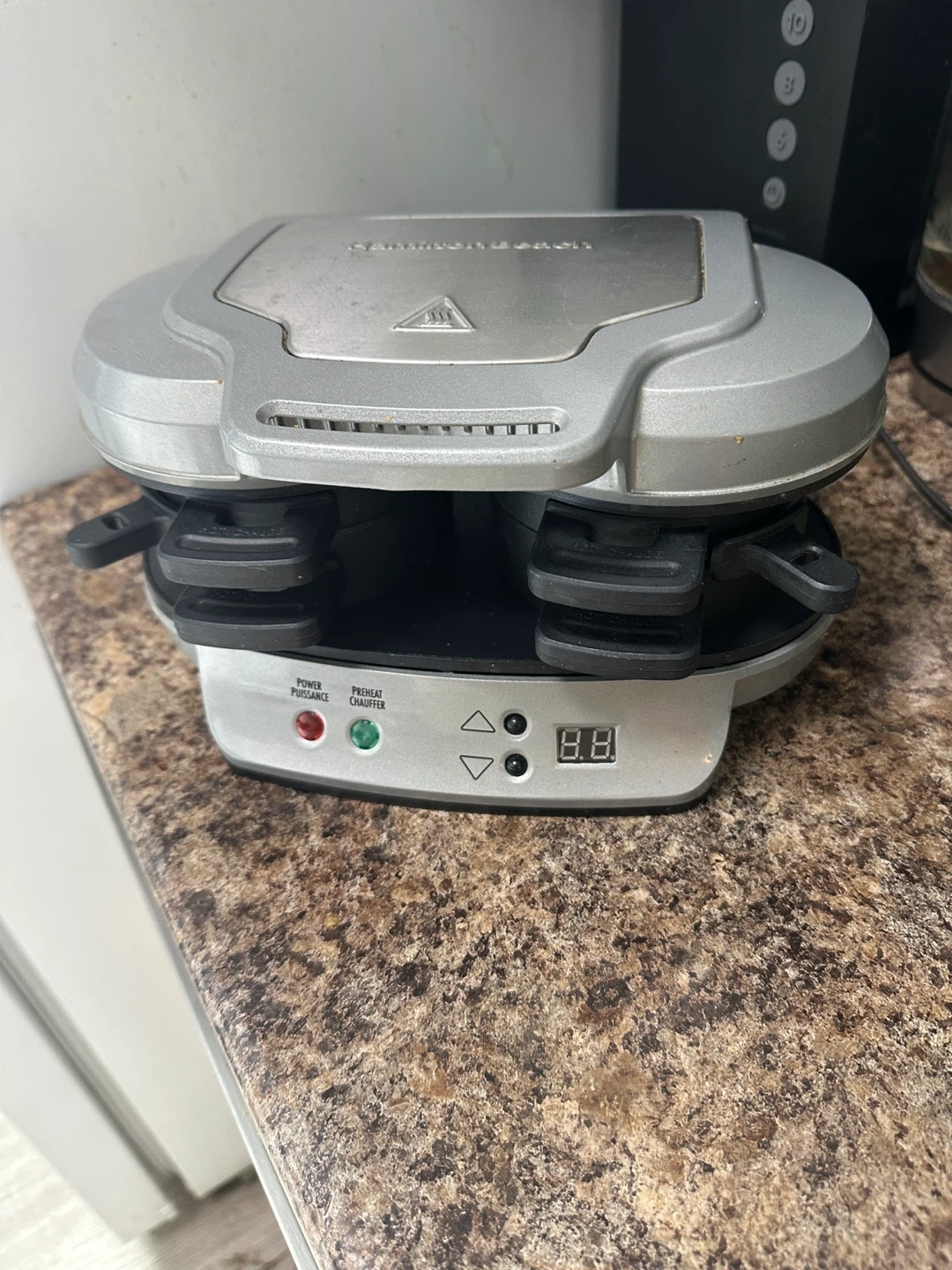This Hamilton Beach sandwich maker makes quick and easy sandwich. It features indicator lights for power and heating. Non-stick grids are easy to clean. Make your own egg mcMuffin at home.