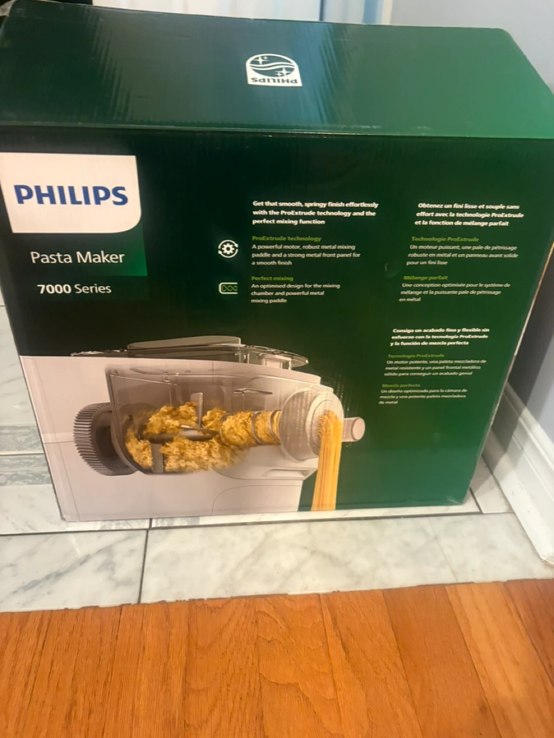 Make fresh pasta at home with the Philips Pasta Maker 7000 Series. It comes with ProExtrude technology and an optimized mixing paddle for a smooth dough. This machine can make up to 500g of pasta in under 10 minutes. It's designed for making delicious, fresh pasta with minimal hassle!
