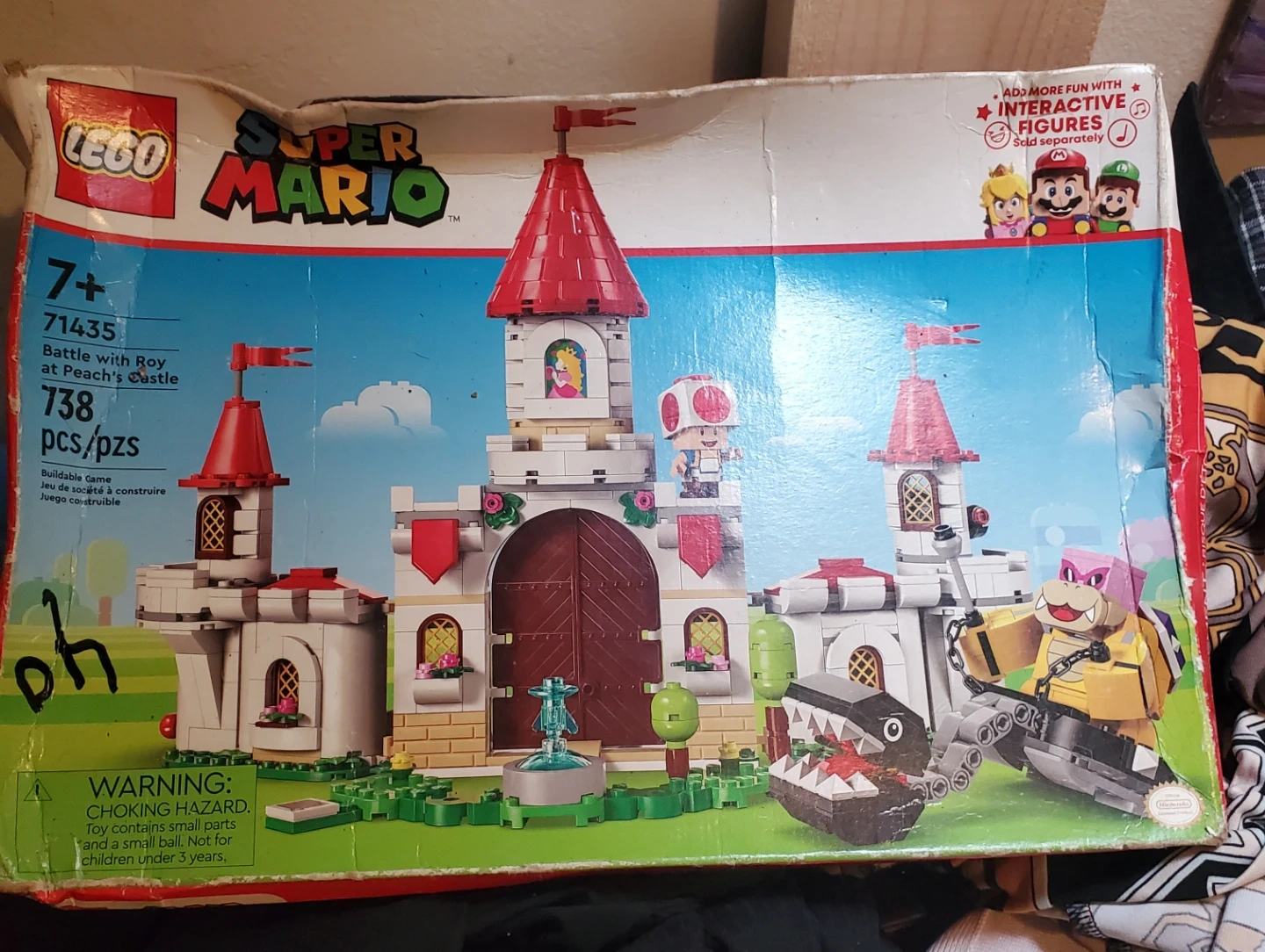 LEGO Super Mario building set 71435. It's the Battle with Roy at Peach's Castle. Includes 738 pieces. Fun for ages 7+. Box iz a littld bet up
