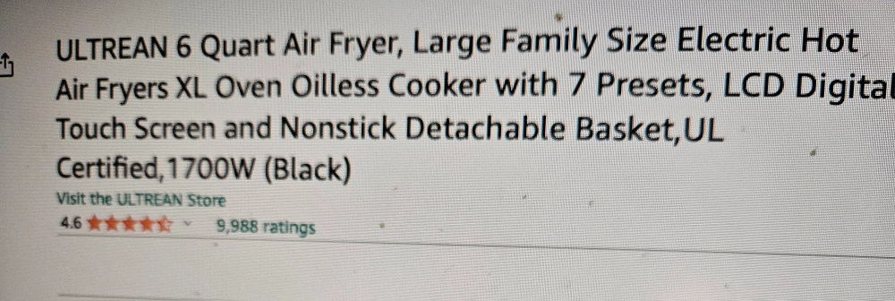 Ultrean 6 Quart Air Fryer XL Family Size