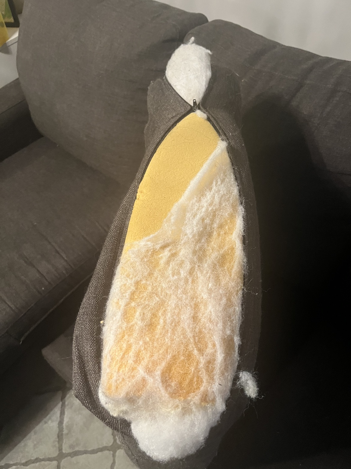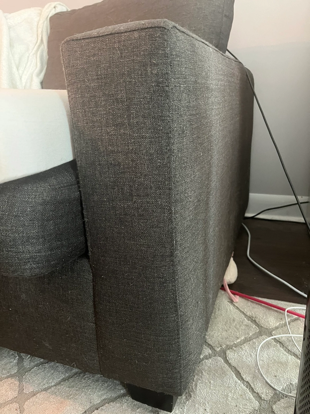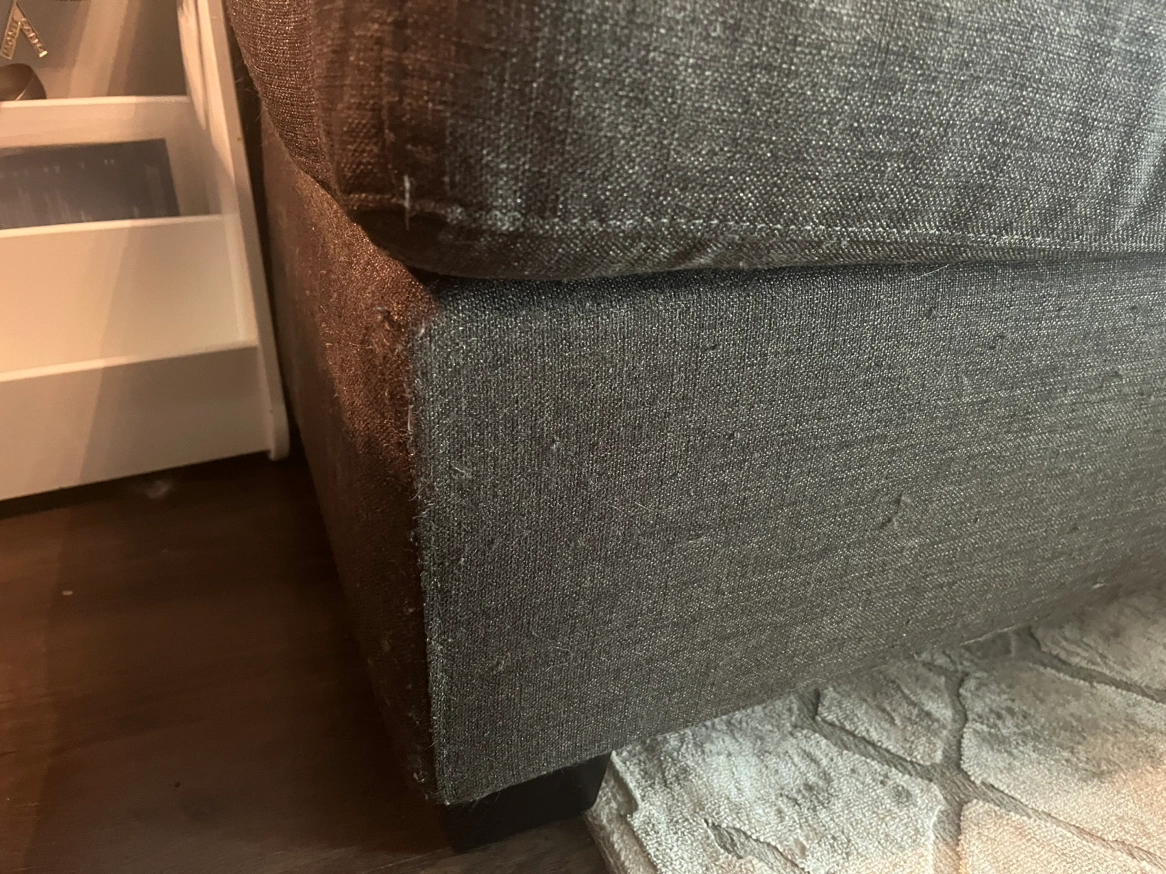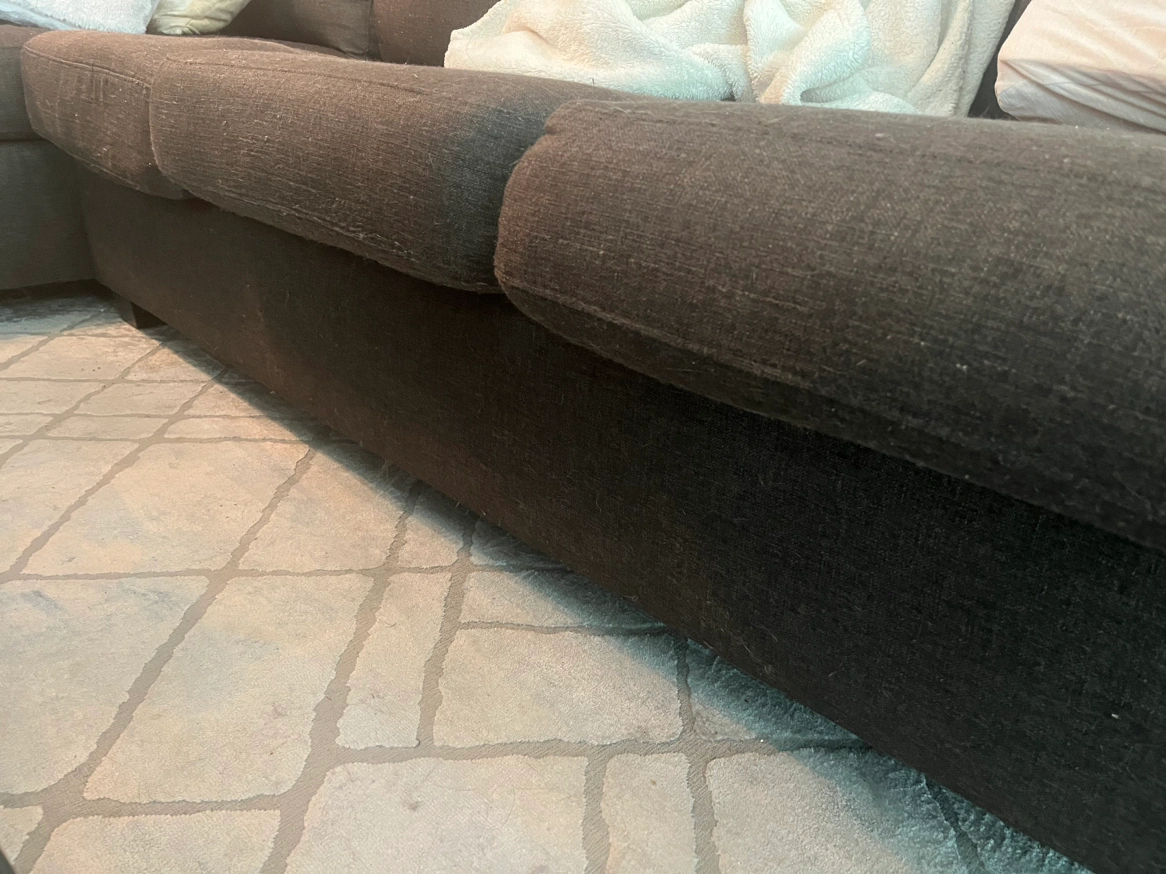 Chaise detaches easily. Very comfortable couch 1 cushion needs the zipper to be fixed as shown in pic The covers of the cushions are easily removable and can be washed Still has a lot of life to it as it is in great condition For pick up near Dufferin and Wilson Cat in the home