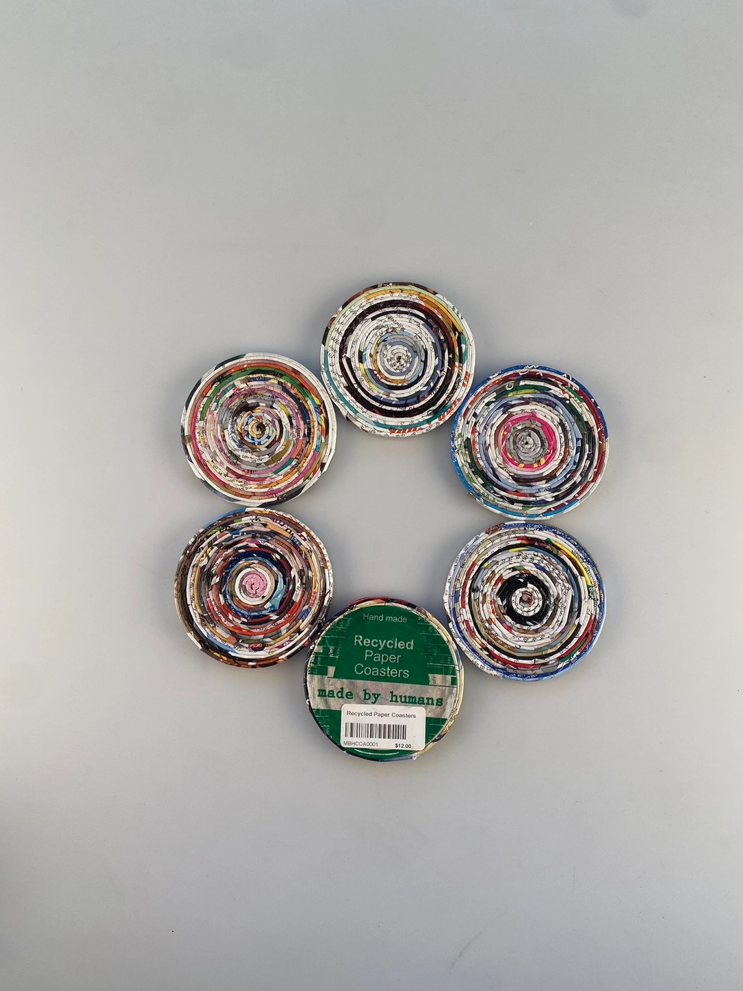 Six Coaster Set Recycled Paper Made by Humans New