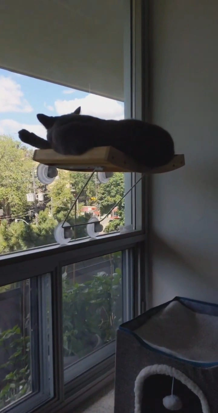 Window Perch that is supported underneath by suction caps.