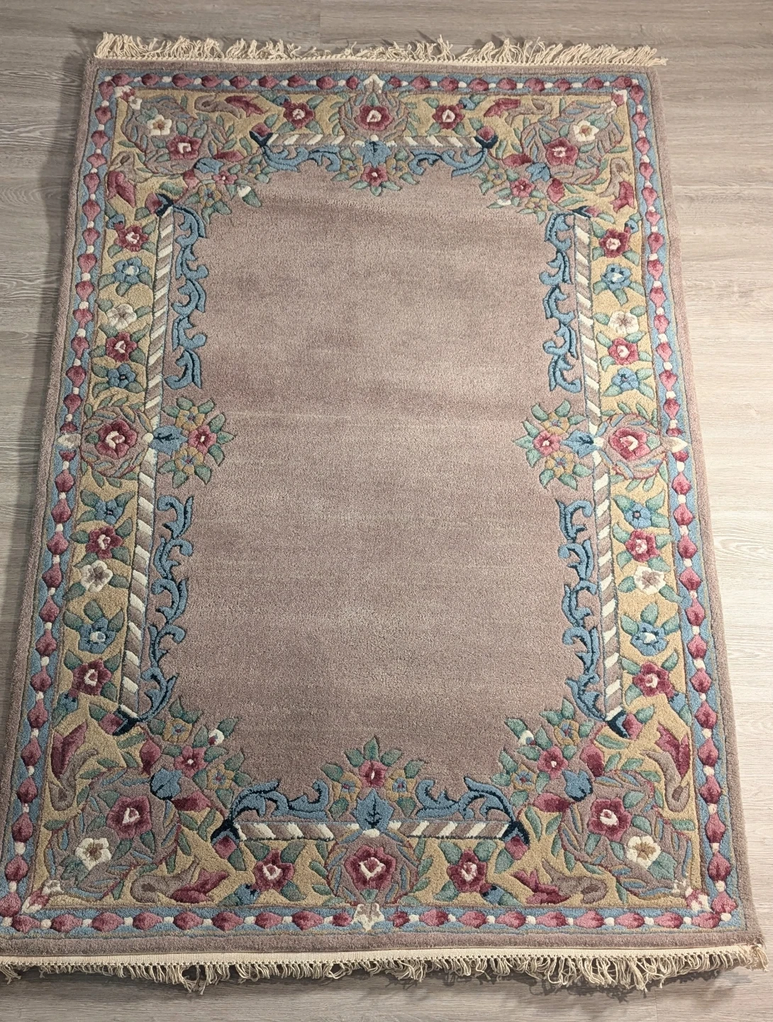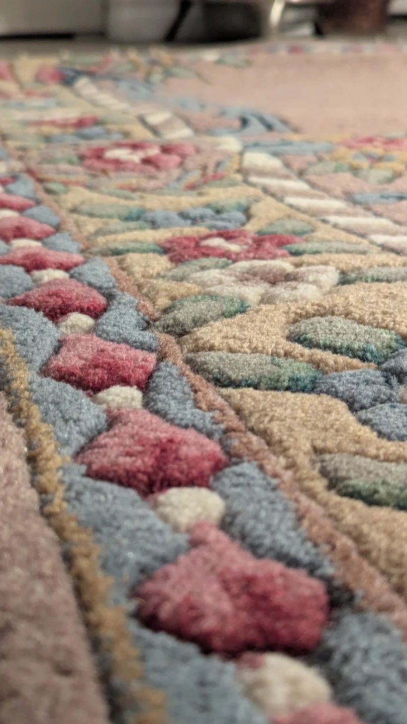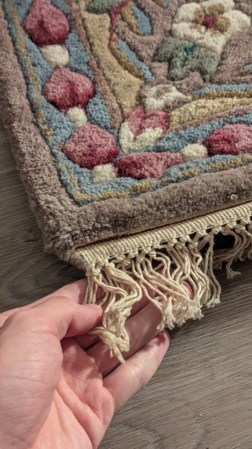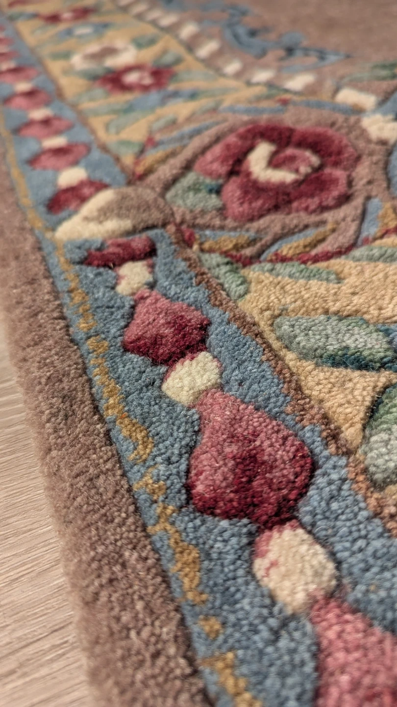 Professionally handmade/hand-knotted in India. Unlike synthetic rugs, this is a "living" fiber rug that will last for decades.