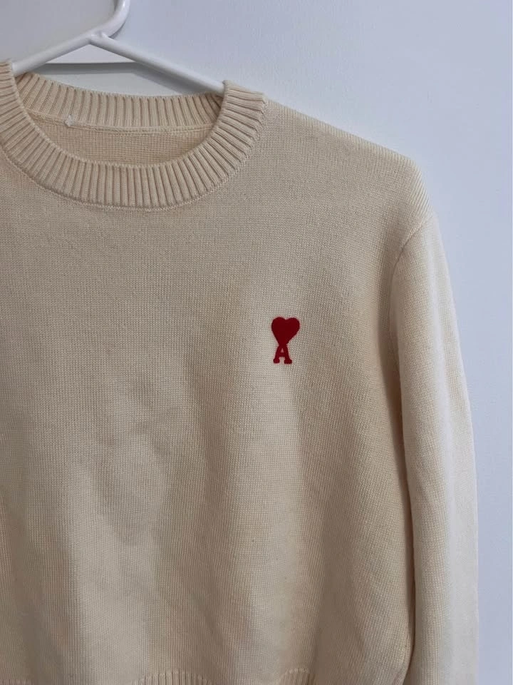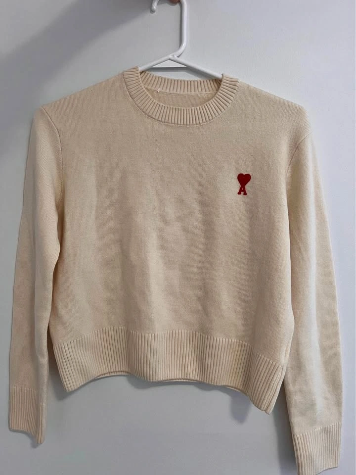 Cute AMI Paris sweater. Cream color. 100% authentic. Only worn a handful of times. Womens Size XS with no tags :(, But price is negotiable bc of that!