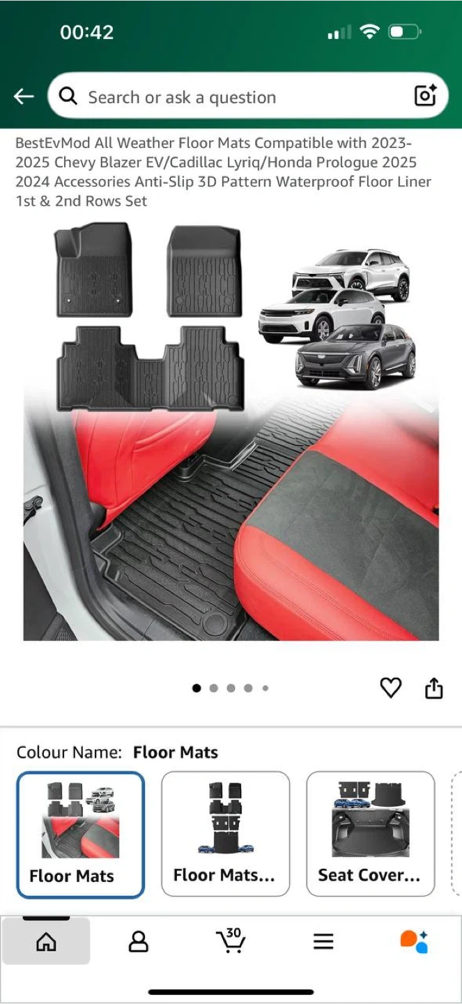 π BestEvMod All-Weather Floor Mats for Chevy Blazer EV / Cadillac Lyriq / Honda Prologue (2023β2025)