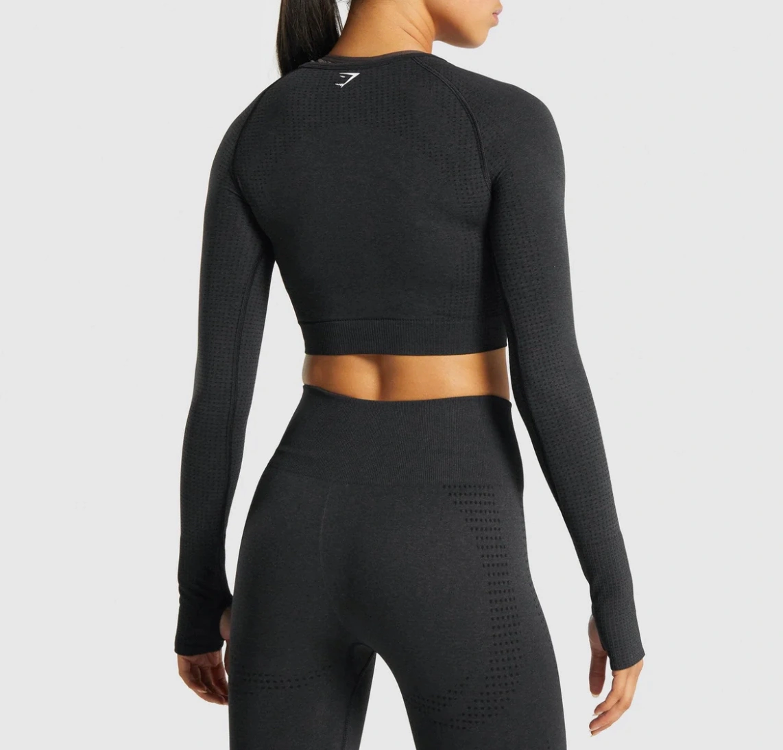 Elegant crop top, form-enhancing fit combined with sweat-wicking technology and supportive fabrics.