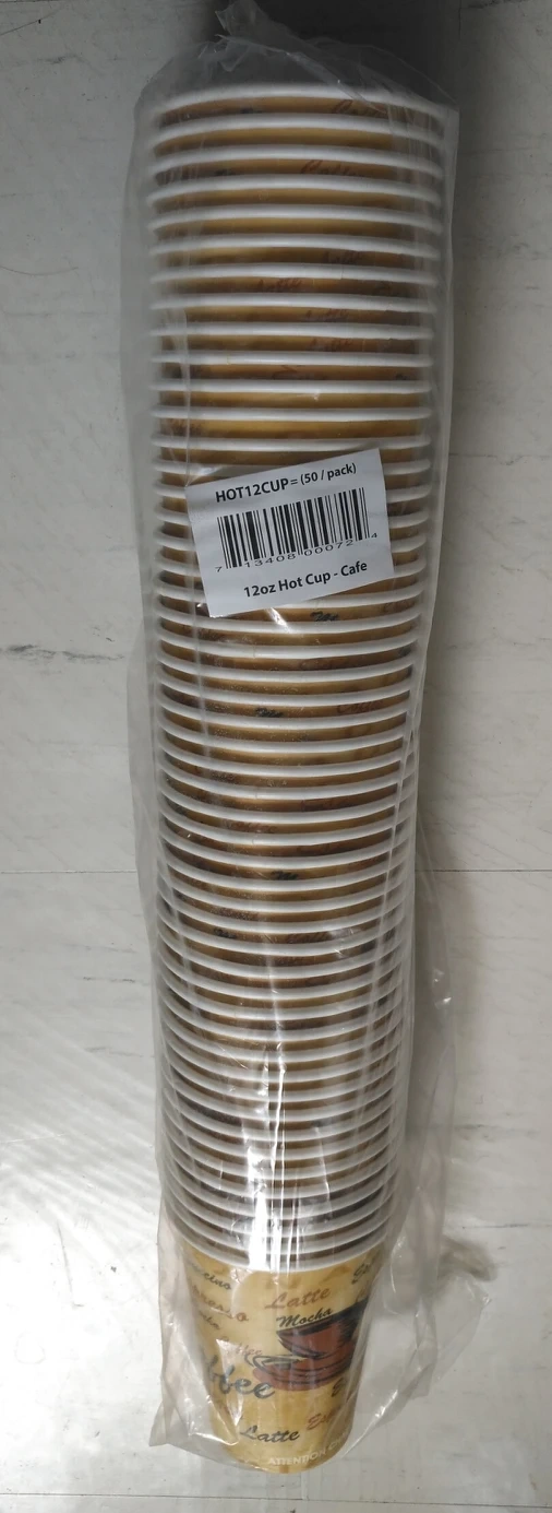 12oz cups, 50 per pack at $2 a pack - I have 3 packs left