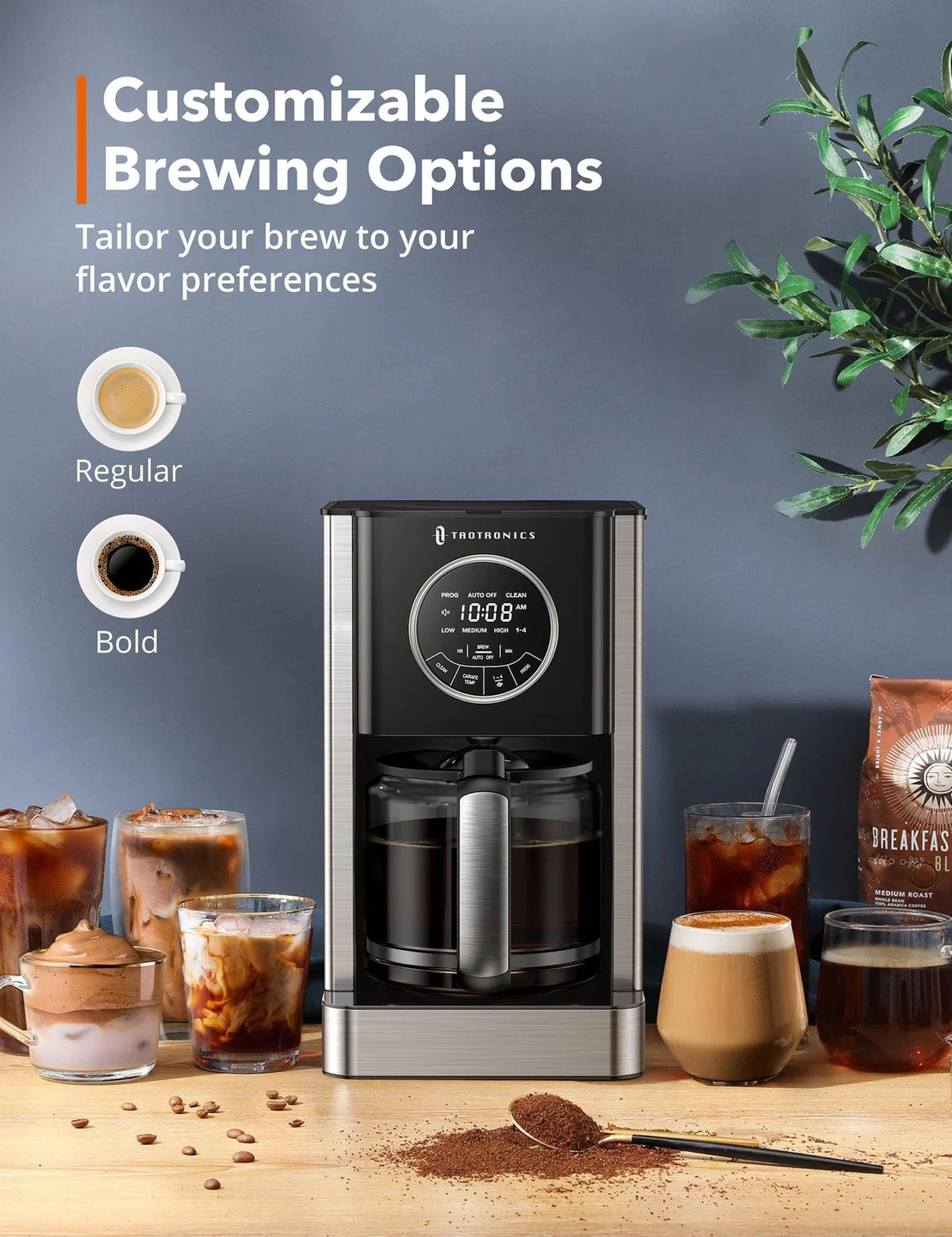 Customizable Brewing Strength: 1-4 cup function drips coffee more slowly to increase concentration; you can choose between regular and bold coffee to suit your taste
