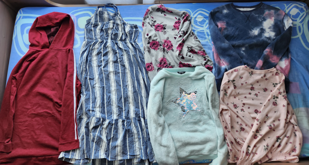 Kids/teen girls clothes for sale in Mississauga, $3 each -great condition, only used a few times -selling because my sister doesn't use them anymore -cash or e-transfer accepted -pickup at my location *Don't ask for delivery, I will not deliver this* SIZES kids/teens (some are estimates): -Red hoodie: Large [estimate] -Blue & white skirt: XL(14-16) -Grey&flower shirt: L/G(kids) -Aqua/Teal shirt: XL(14-16) -Blue, white&pink: Large [estimate] -pink&flowers shirt: L/G(7-8) -pink hoodie: CA: 10-12A US: 12/14 -blue & white stripe dress: XL(14-16) -green pants: medium [estimate] -blue pants: Small -grey hoodie: medium [estimate] -grey,black&pink heart shirt: XL(14-16) -brown&white hoodie: XL [estimate] -grey, white&pink shirt: medium [estimate] Message me for more info