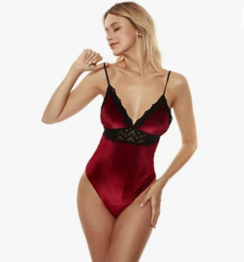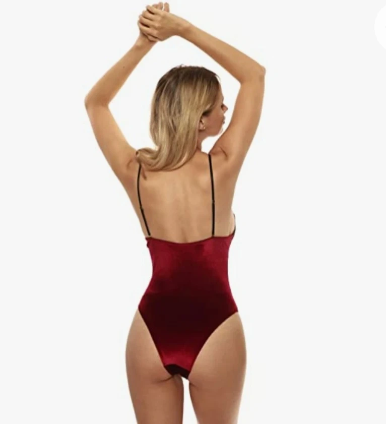 Velvet body suit, Size Small. Cups are padded and straps adjustable. Lace cut out section. Super cute, just doesn't fit me ðŸ˜
