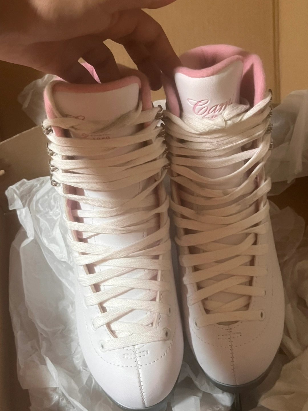 Size 6 woman’s figure skates. Used once or twice and in perfect condition.