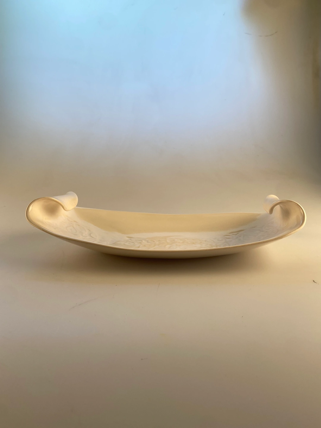 White Hilborn Pottery Handmade Large Curled Platter Dish