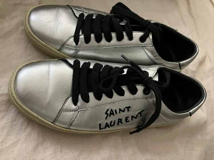 Saint Laurent YSL silver classic court sneakers size 38.5