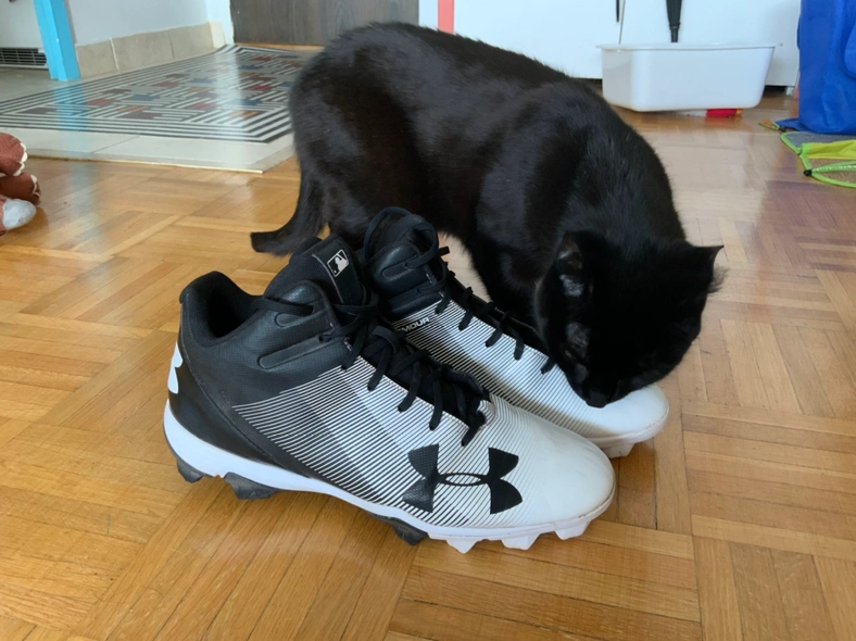 You can tell these aren’t stinky because my cat decided to put his entire face into one of the shoes while I was taking photos. (But seriously, these have been very well cleaned)