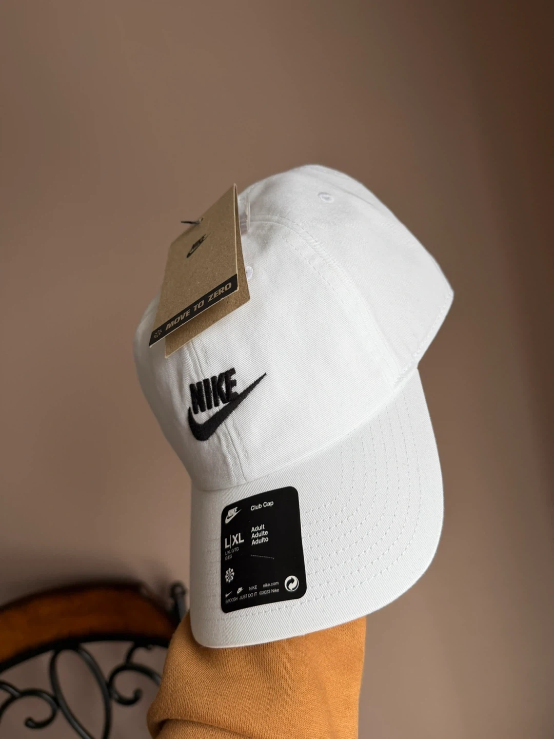 White Nike Club Cap. It's made from a comfortable material. Size is L/XL. The cap's strap is adjustable.