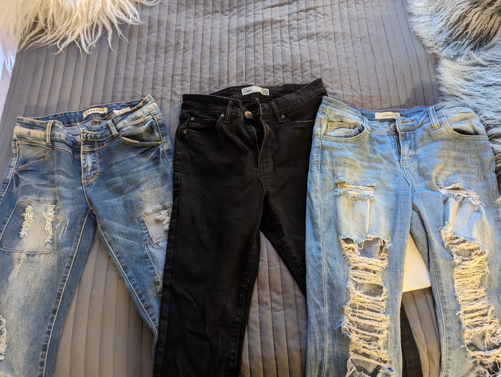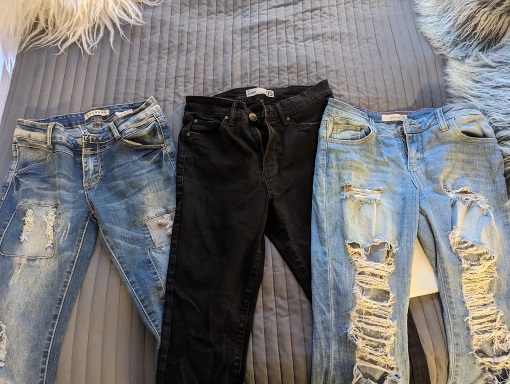 Beautiful jeans- black skinny jeans and 2 distressed skinny jeans.