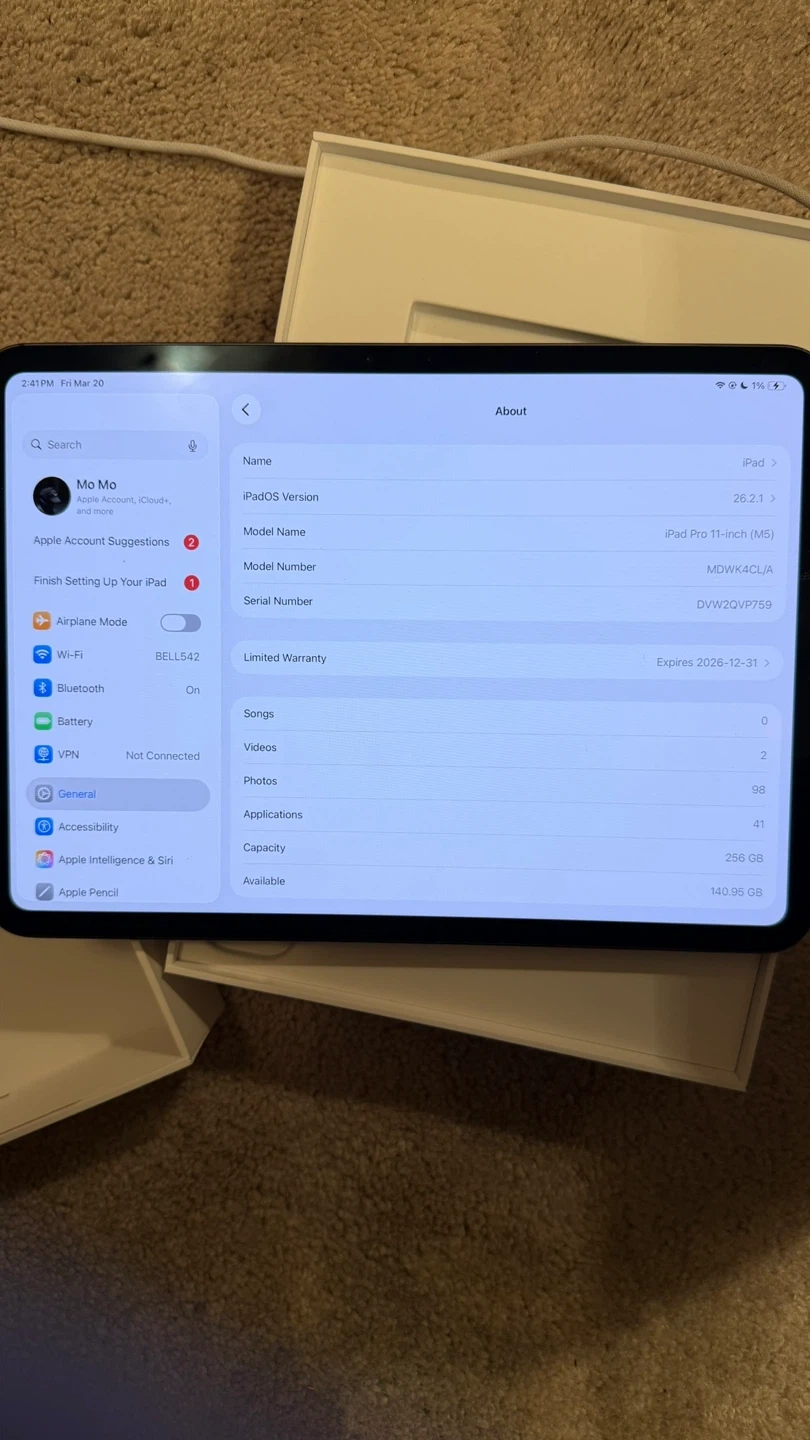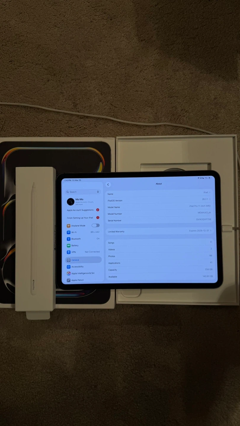 Apple iPad Pro 11-inch tablet. It's the Wi-Fi model with 256GB storage capacity. Includes original box and Apple pen. Bought January 1