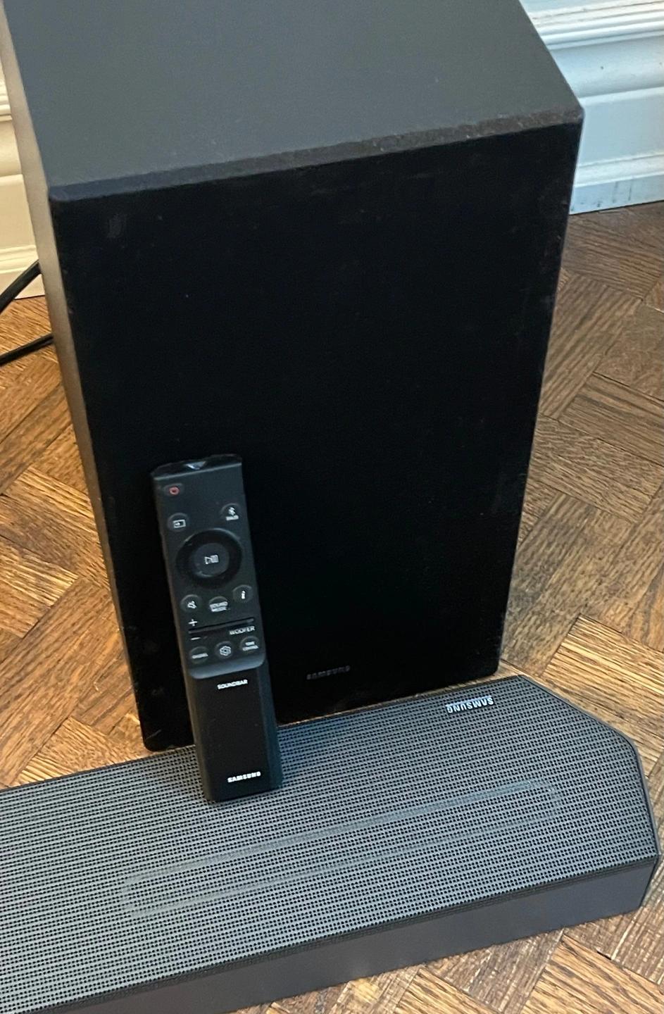 Hi neighbours! I’m selling my Samsung Q-Series 3.1.2 channel audio system. This is a current-generation setup with dedicated upward-firing speakers for true Dolby Atmos 3D sound. It makes a massive difference for movies and gaming.