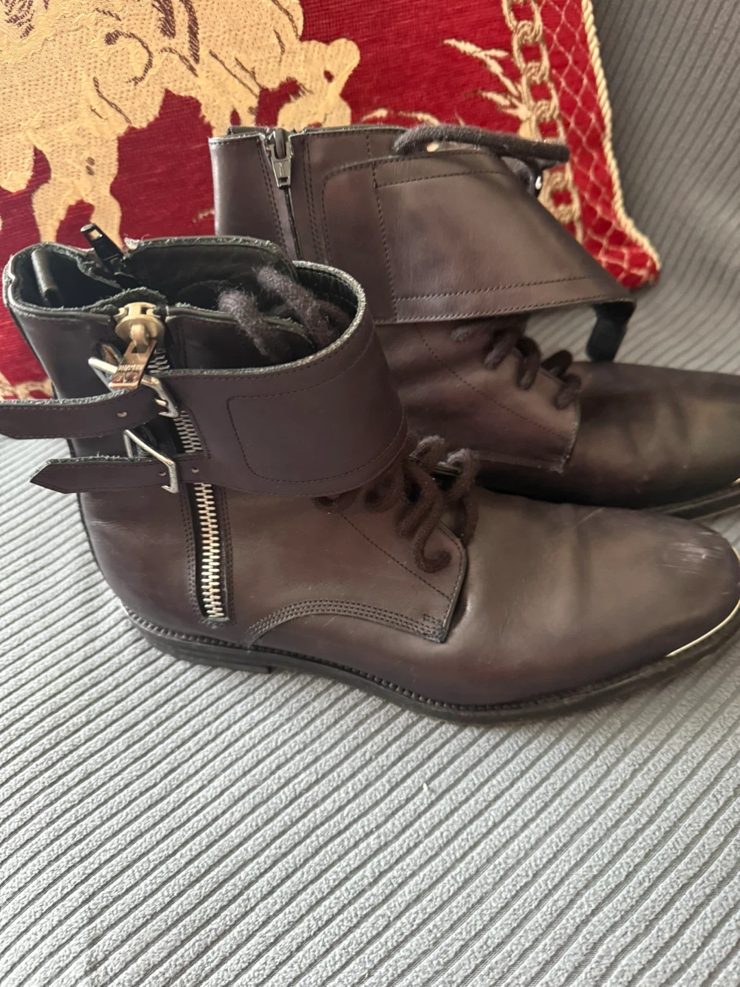 Stylish brown leather ankle boots featuring a side zipper closure and lace-up front. Material is genuine leather. These boots are perfect for adding a bit of edge to any outfit.