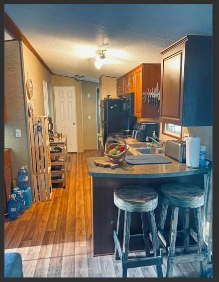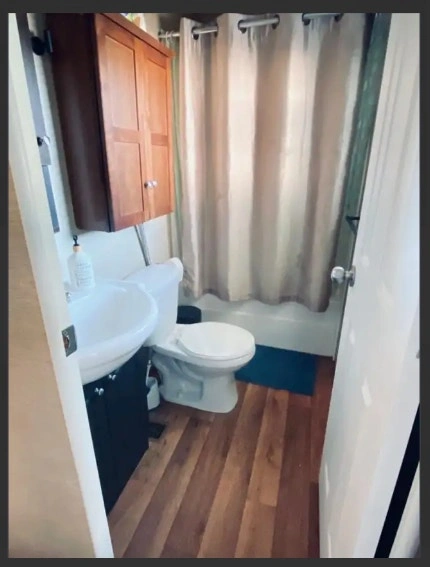 Price reduced! 2013 Northlander Cottager Escape park model trailer, 39 x 14 ft, 3 season only. Recently removed from a resort, it's fully furnished and move-in ready. Currently in storage near Keswick. Trailer mover is on standby. Features 2 bedrooms (Queen; Bunk with 2 Doubles), 3-pc bathroom, gas stove, over-the-stove microwave, fridge with top-mount freezer, L-shape sofa/bed in the living room, TV cabinet, handcrafted wood bar stools (2), and a movable kitchen island with storage. Includes air conditioning, a new gas water heater (2024), and a gas furnace. 550 sq. ft.
